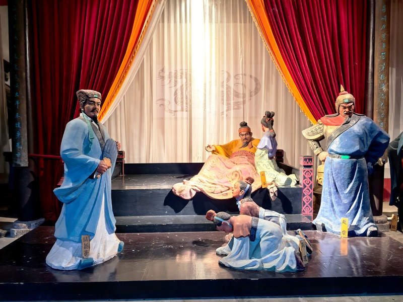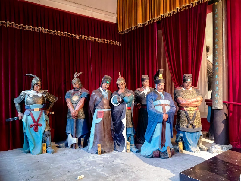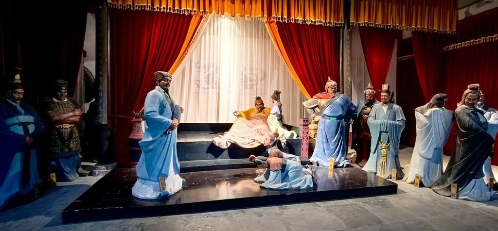 白帝城托孤堂刘备托孤大型彩塑,再现了1700多年前永安宫刘备托孤的悲壮历史。