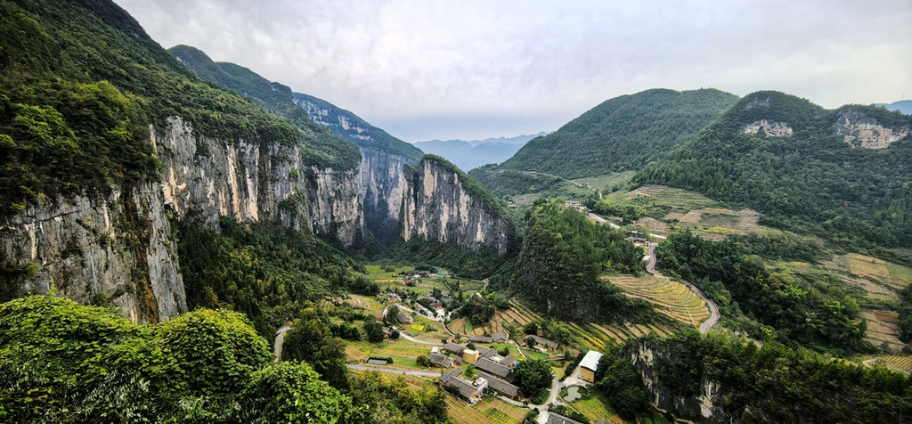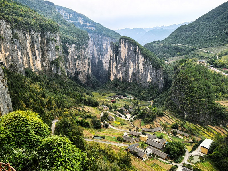 旱夔门下被群山环绕的小村庄,恬静安宁,真是修仙养身的绝佳去处。