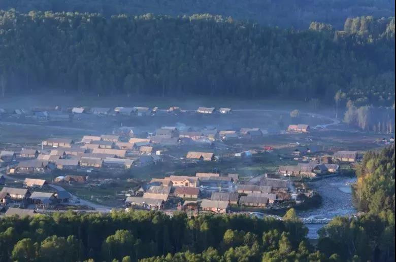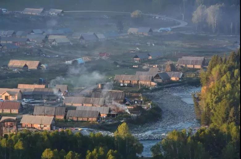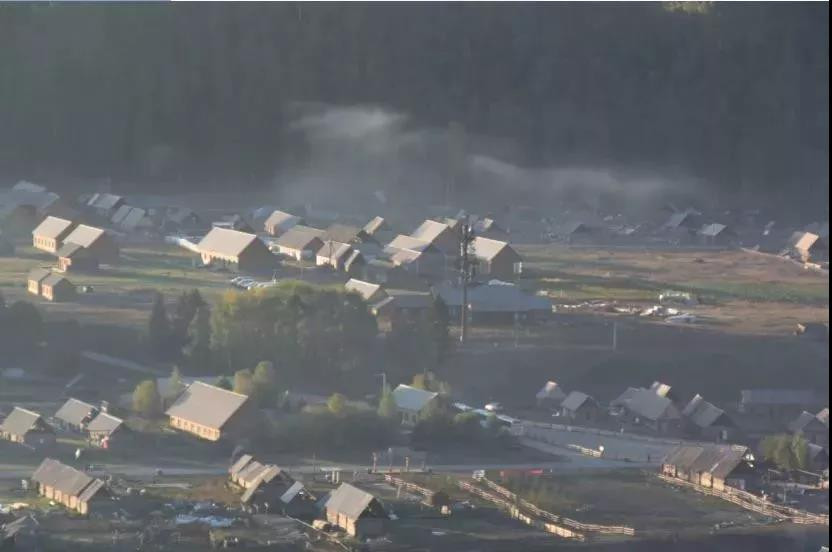 (晨雾、炊烟缭绕中的禾木村)