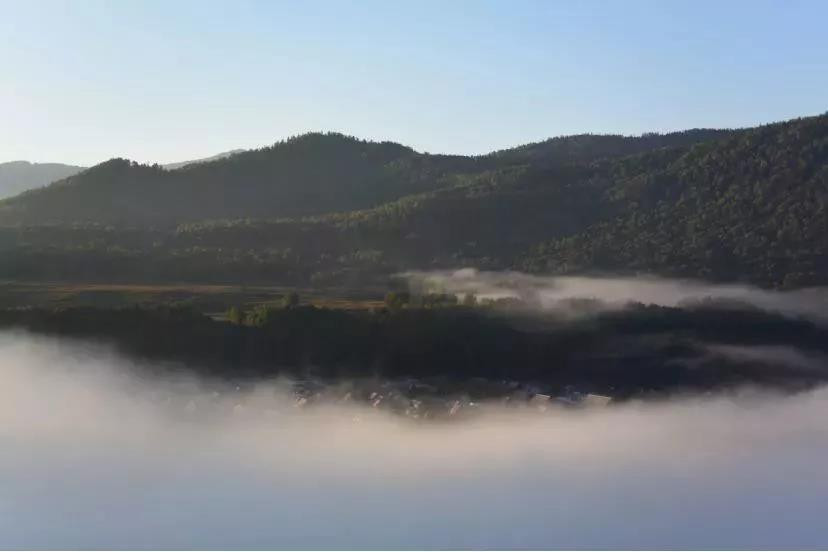 禾木村似乎是和游人玩捉迷藏,只是隐隐露出一角,又快速隐没在晨雾中,不愿再露出,惹得众人心痒毛抓。