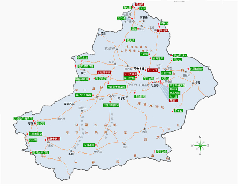 下面新疆的主要旅游景点景区介绍给大家:(安区域分乌鲁木齐周边、北疆景点、南疆景点)