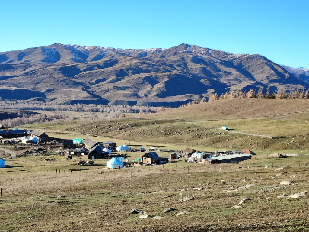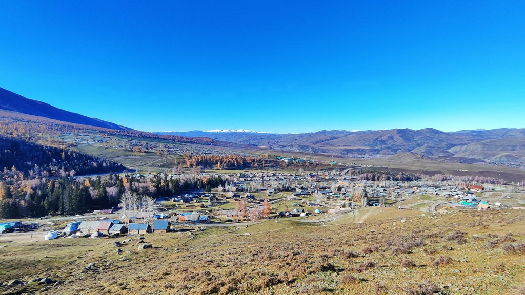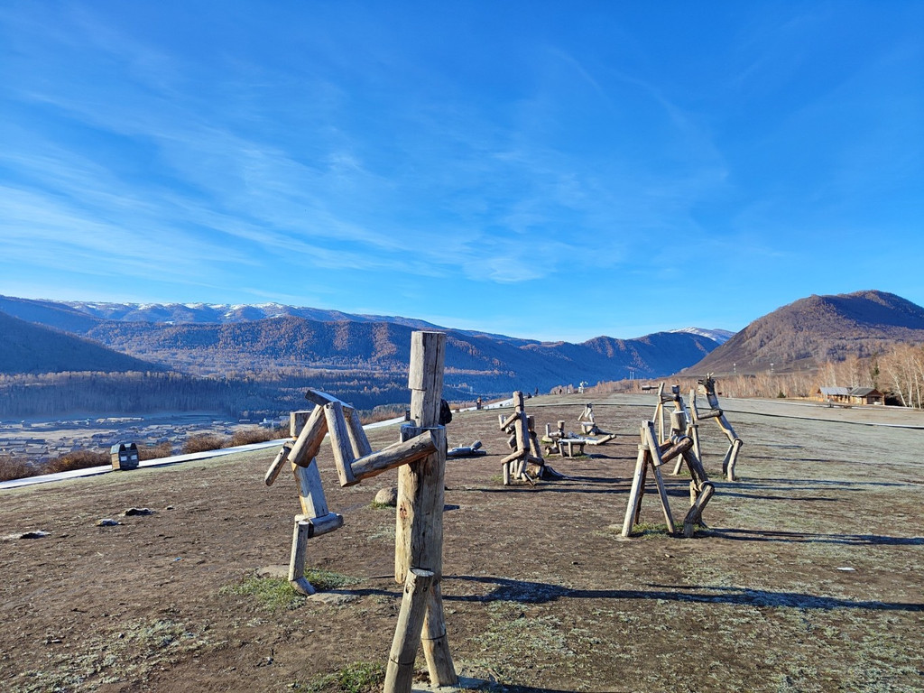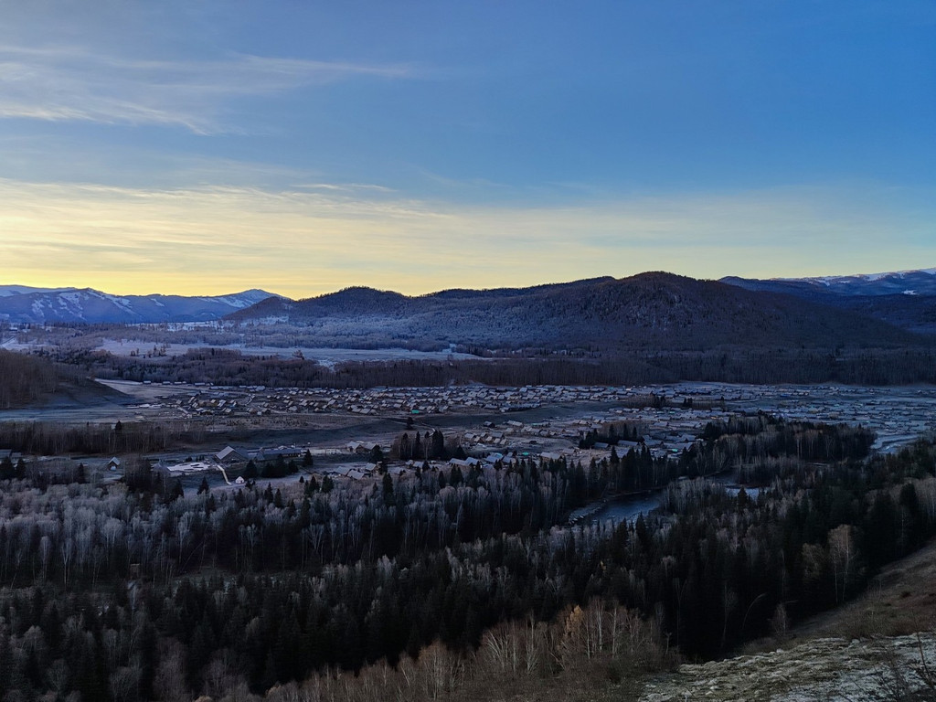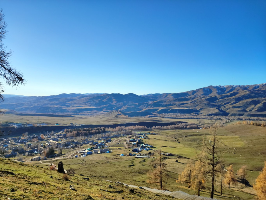 跟姐一家子道别,非常感谢。姐一家子沿着中哈边界开回 布尔津 ,我留在村里,入住山脚的民宿,放下行李出门爬后山的木栈道。
