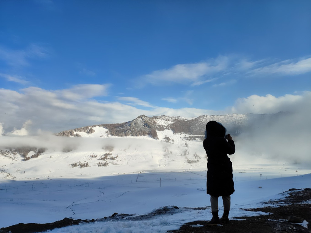 大清早的冻人啊,神仙湾全是雾,啥也看不清。