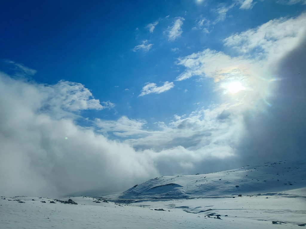 途径几个观景平台,下车拍照,冻得够呛,赶忙回车 里加 厚外套和秋裤。漫山遍野的雪,树林尽管依稀可见,也都披了一层薄霜。