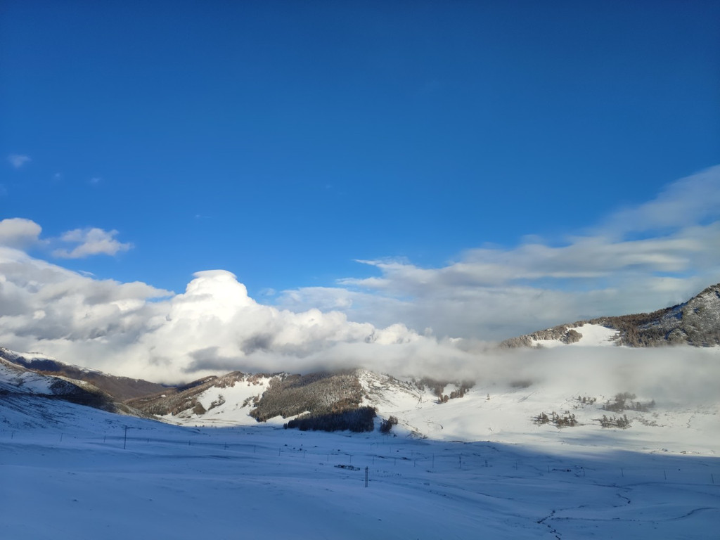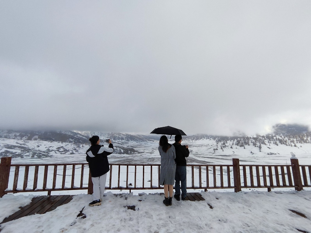 机场出发,路上经过检票口,购买淡季一票通100元,现场买即可。沿途飘雪,略冷,看着窗外白茫茫一片,不免嘀咕,我是想来 北疆 看秋的哇,不想看雪啊,怨念。