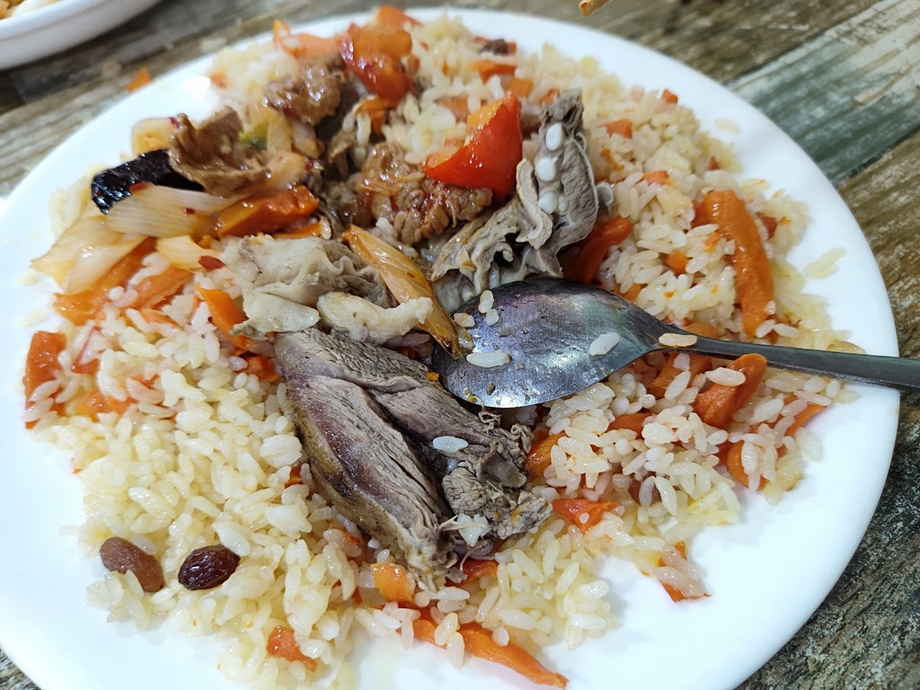 12点左右回民宿收拾行李,去隔壁吃早餐,牛肉汤和烤包子,一碗汤58元,烤包子8块一个,好在都吃完了,不然还得含泪吃,哈哈哈。吃完姐也过来聊天,还买了囊和羊肉串,大家一起吃。