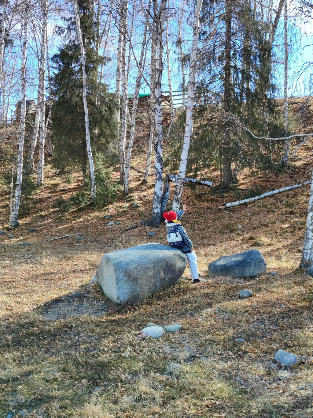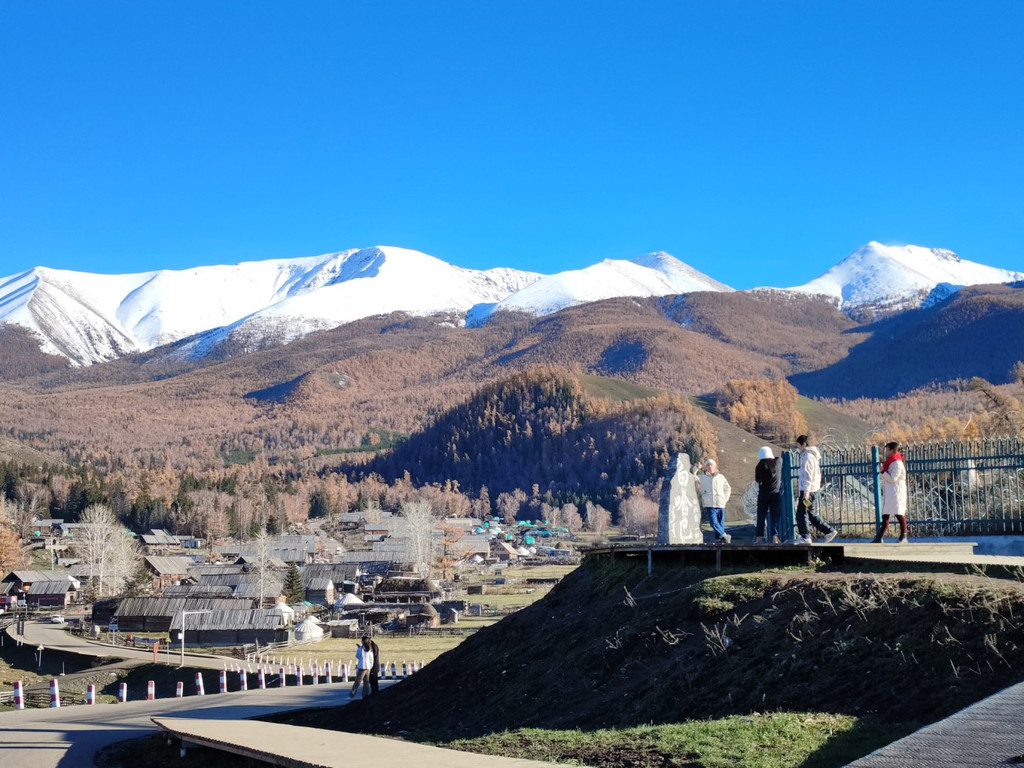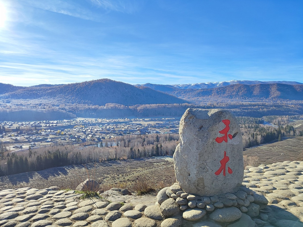 到村里,兜了一圈后,去了大石头观景台,那里有 白哈巴 村碑, 西北 第一村,很有纪念意义的一处打卡点。这里视野也够好,能看大半个村子。