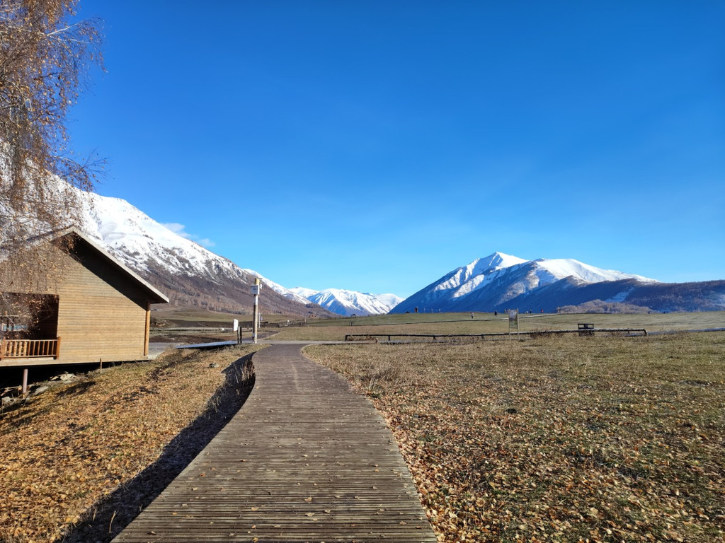 巴特巴依观景平台:村庄北部观景台,有木栈道,这里有草原,森林,雪山,还能俯瞰整个村庄,视野开阔,景观多样,绝对不要错过。