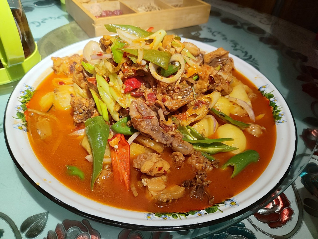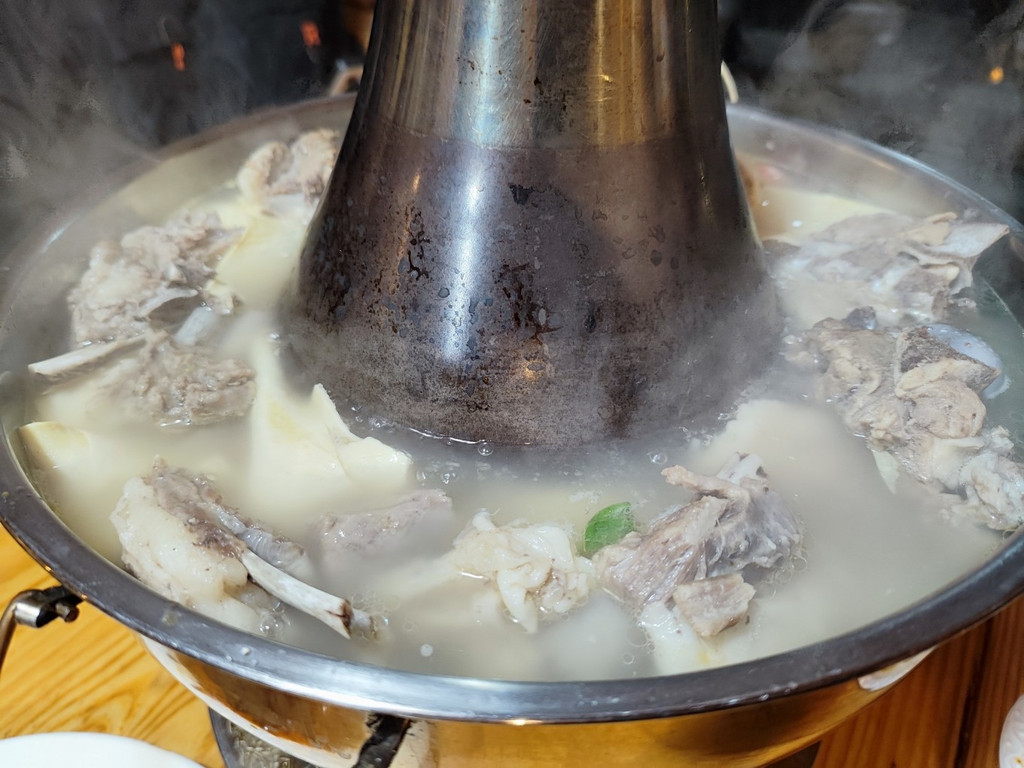 羊肉土火锅找了家饭馆,梦回故乡,土火锅380一份,还有炒烤肉98,羊肉大餐。大块的羊肉下肚,最适合这冷天了。炒烤肉,好像是烤好的肉再炒一下,味道也挺香,像烧烤。