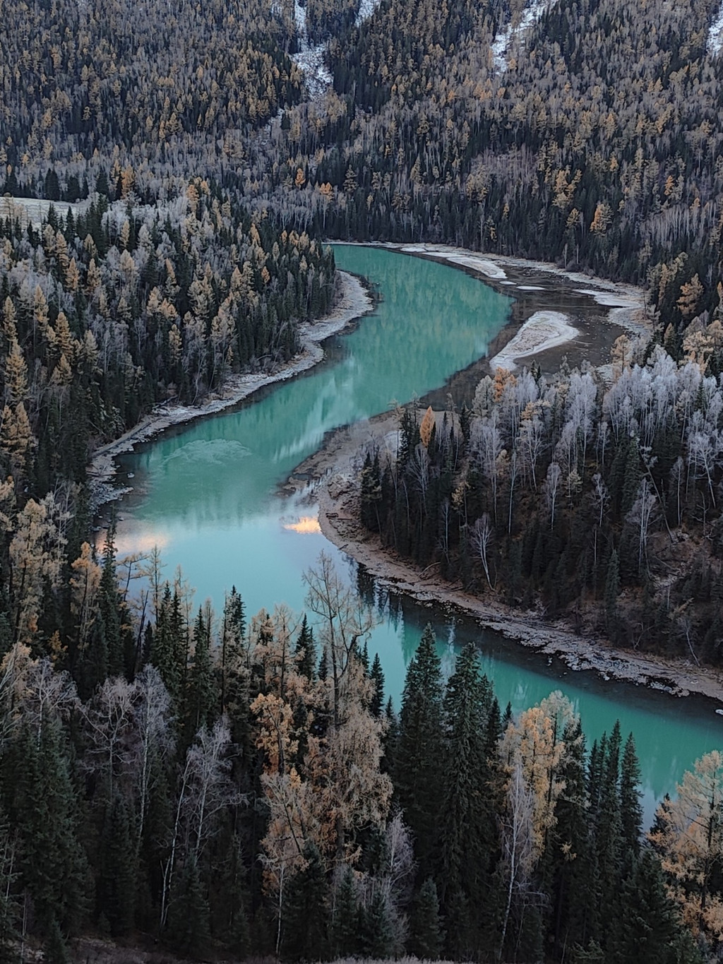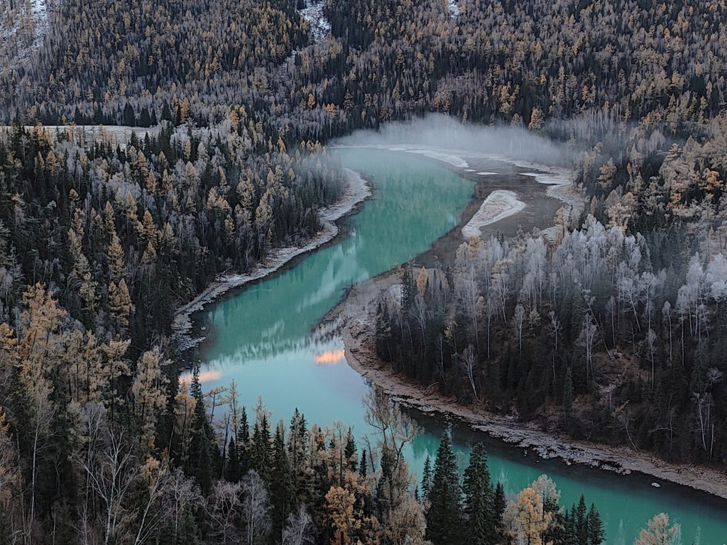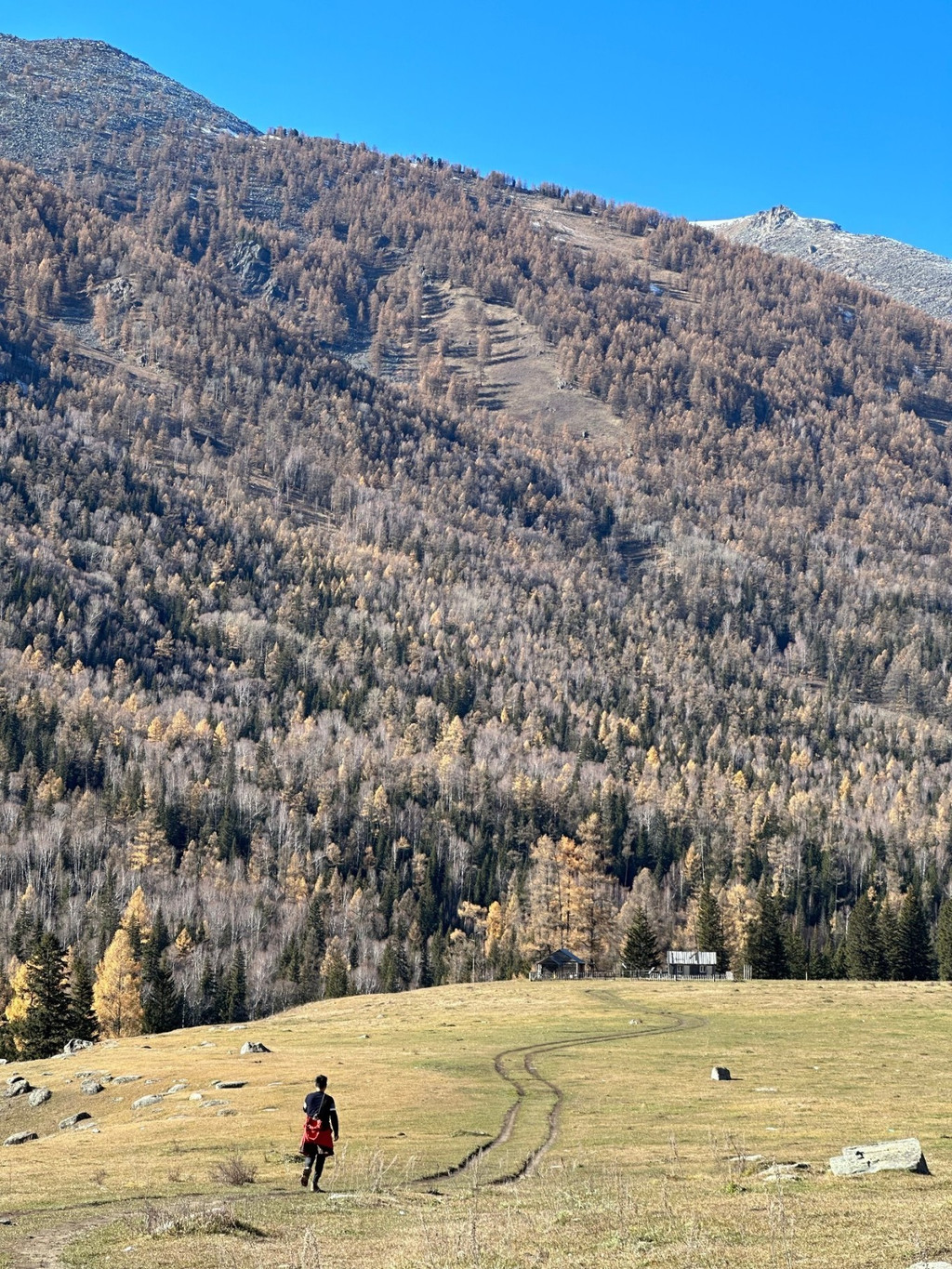 这次先去 北疆 ,那里有神的自留地—— 禾木 村,晨雾、树林、木屋。还有 喀纳斯 湖、月亮湾,还有 西北 第一村 白哈巴 。心心念念多年,终于,在23年10月启程,赶在秋末。