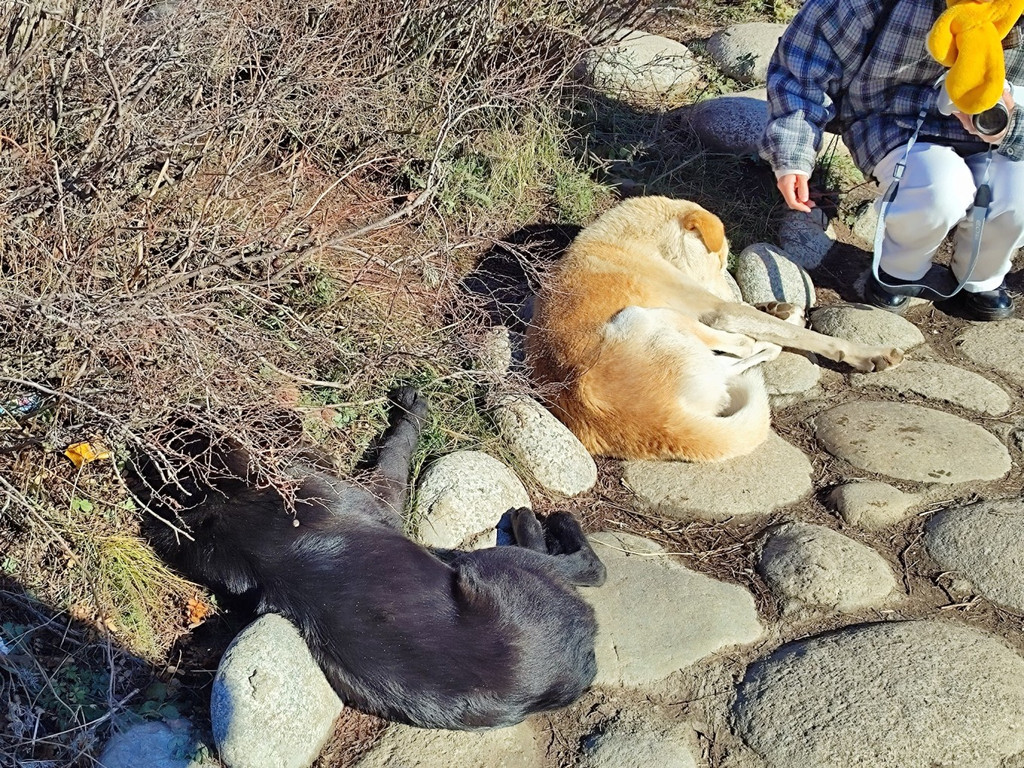 聊天时,也不知道是谁说下辈子想当条狗,当条 禾木 村的狗,随便溜达,累了就直接躺倒晒晒太阳,不要太休闲惬意。看到的这几个大家伙,都好像巴适得很,蜷缩着享受 日光 浴。