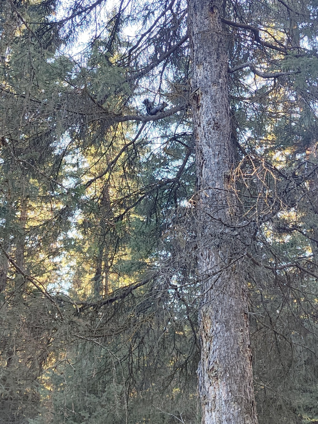 在 喀纳斯 湖码头,能远眺对面山顶上的钓 鱼台 ,前天登顶俯瞰全湖,今天湖边远眺山顶,俯仰之间,山水之韵有了。栈道旁的树林,时不时有黑色小松鼠活跃,来回共看到四次松鼠。