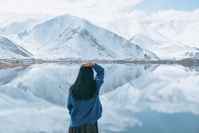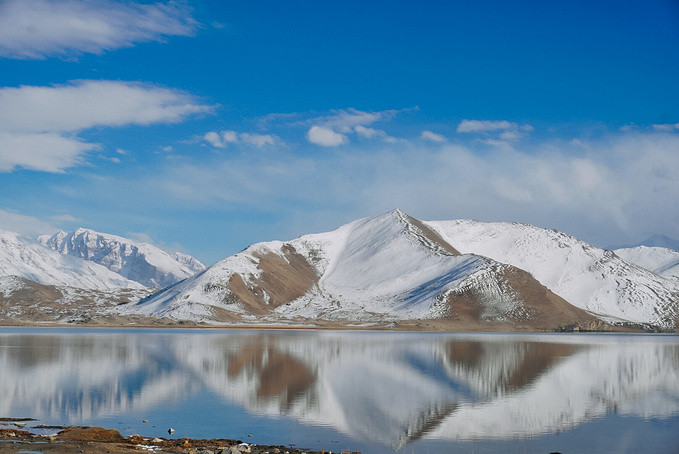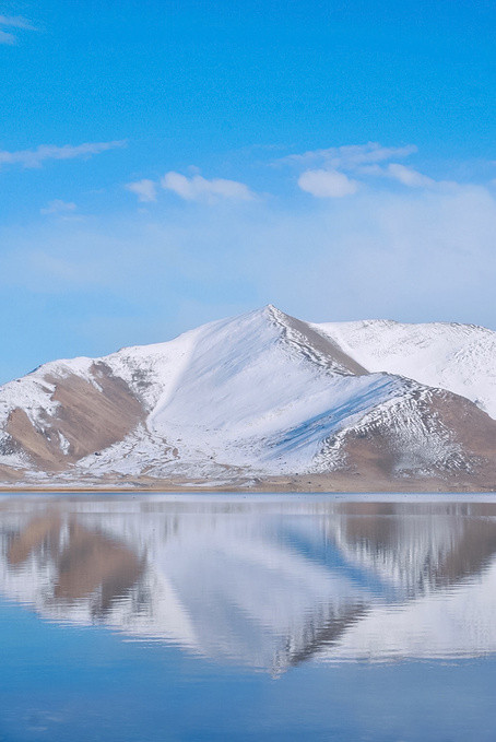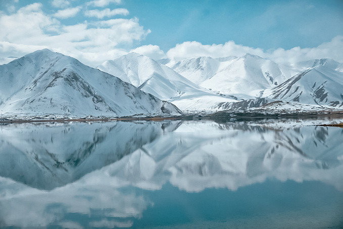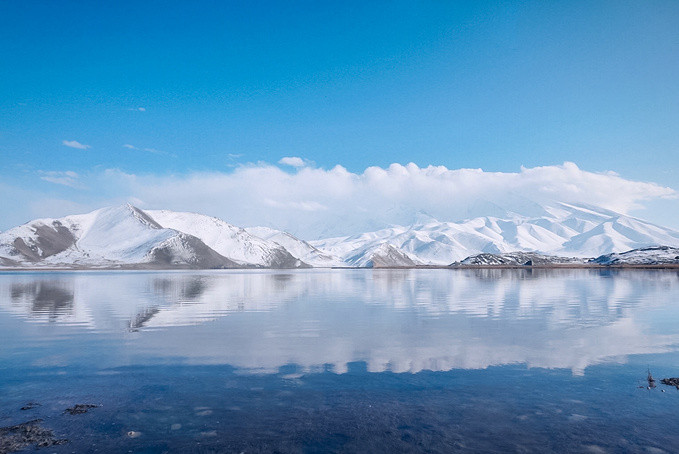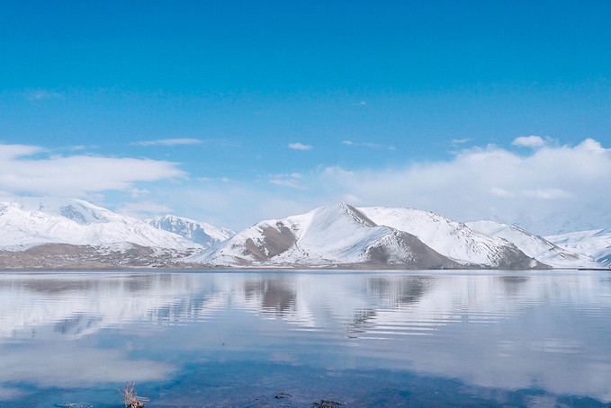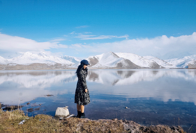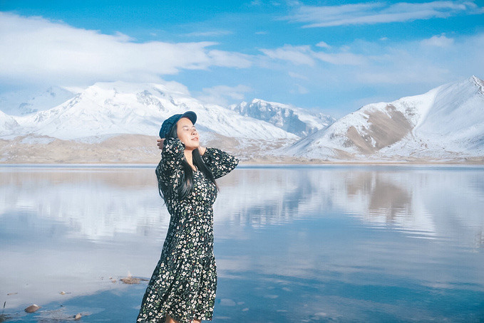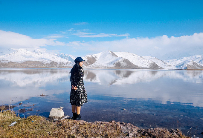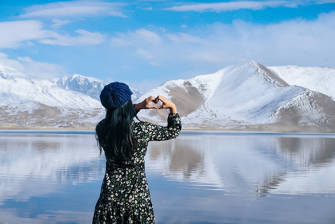 很幸运地被上天眷顾,遇上天气晴朗的帕米尔高原。听涛哥说他前几天经过的时候还没有下雪,天气也不好,我们真的是太幸运了,遇见蓝天白云下的卡拉库里湖,湖水洁如明镜,倒映着皑皑雪峰,湖光山色浑为一体,如诗如画让人迷醉,那一刻任何文字都显得苍白无力。
