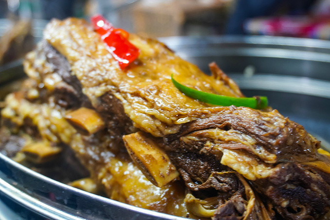 还有冒着热气的羊肚肉,切开后是另一个世界,还真是个宝,虽然有很多人不习惯羊肉的那股膻味,但是说实话,这个吃起来个人感觉好吃。如果你来到,也记得品尝一下。