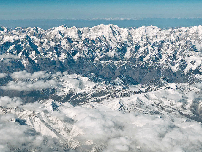 即使见过很多次高原雪山。那一刻还是会被它惊艳到,真的忘记了自己是在飞机上看到的画面,就像闯入了一个从来无人涉足的仙境里,梦幻得有点不太真实。