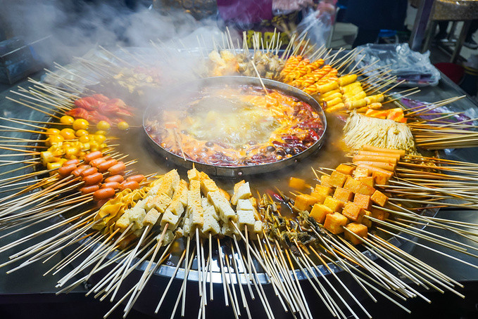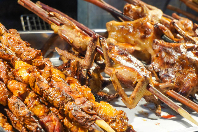 椒麻鸡、烤蛋、炒米粉、烤包子、胡辣羊蹄子、烤馕等等各种小吃,让你眼花缭乱,看见什么都想吃,可只恨自己胃太小。