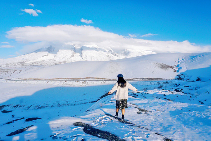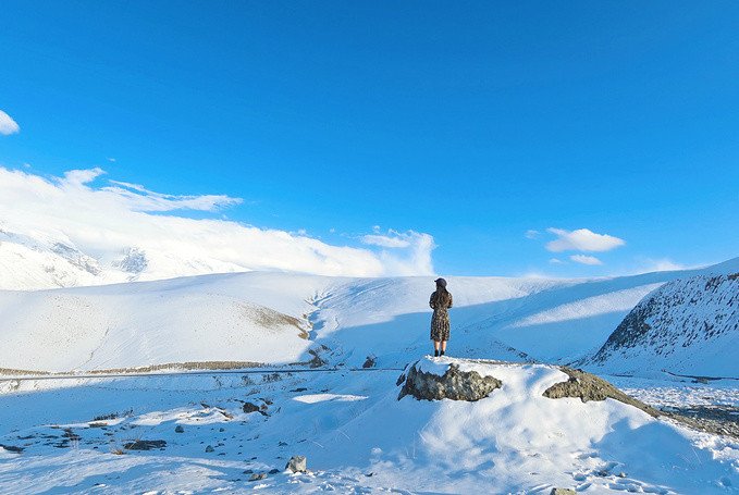 车子继续前行,行驶在一望无际的中巴公路上,瞬间就像进入一个冰雪童话世界,雪山草原、山川湖泊.....看着窗外的世界,我们忍不住下车,在雪地上耍起来,这一切美得有点不太真实。