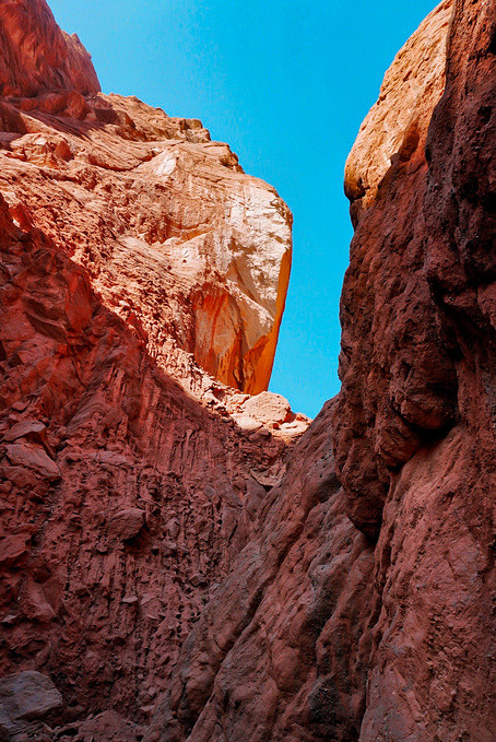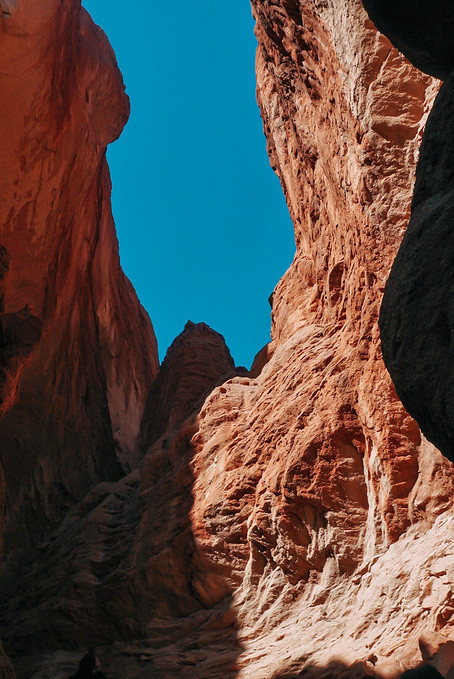 在大峡谷内,太阳通过岩层的缝隙折射进谷底,光线每分每秒都在变化着,阳光照不到的地方,那些红色便不再跳脱,有点灰暗。所以在峡谷底内最佳的拍照时间是有太阳出现的时候,太阳从谷底投入到谷中,阳光打在峡谷壁上,谷壁的红被照得更加鲜亮,光影交错会形成不同的色彩层次,拍出来的照片会更好看。