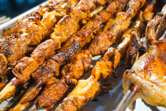 对于一个吃货来说,和田夜市简直就是一个美食天堂。一条室内长廊,两边大小不一的摊位,汇聚了新疆的各种美食小吃。烤肉诱人的颜色,让不少游客停留这里,新鲜的牛羊肉配上各种酱料,味蕾上的满足不过如此。烤羊肉、烤鸽子...各类烧烤,口味别具一格。