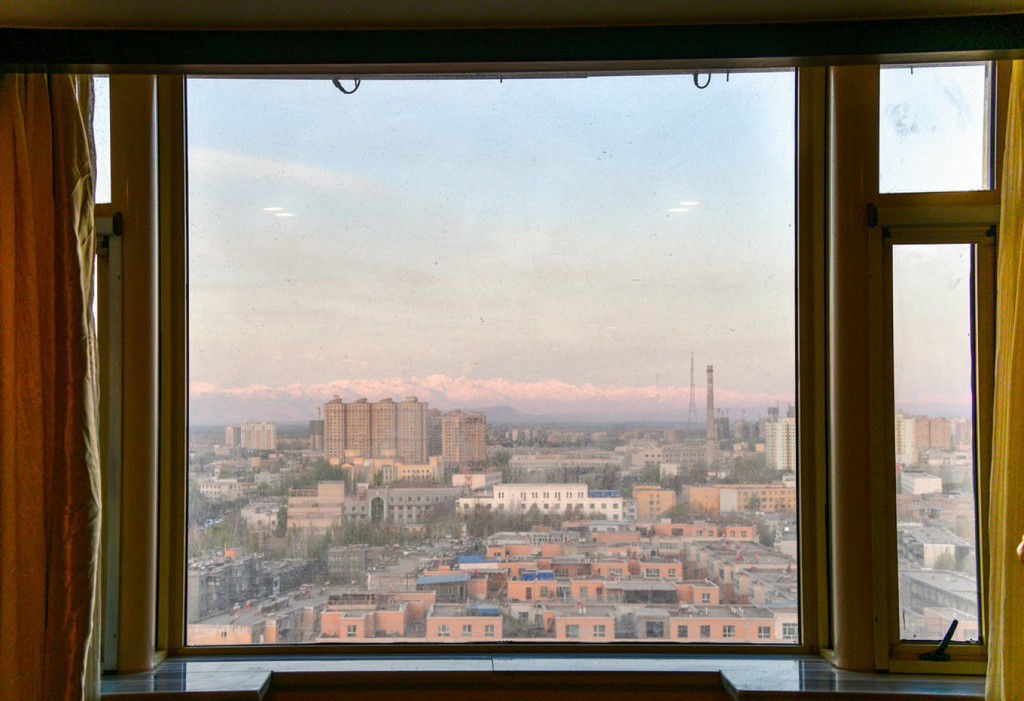 31日8点45分,吃好早餐后回到住宿,窗外的晨曦瞬间太漂亮,可惜窗玻璃太脏,窗户打不开,美景不能放过,勉强拍了几张