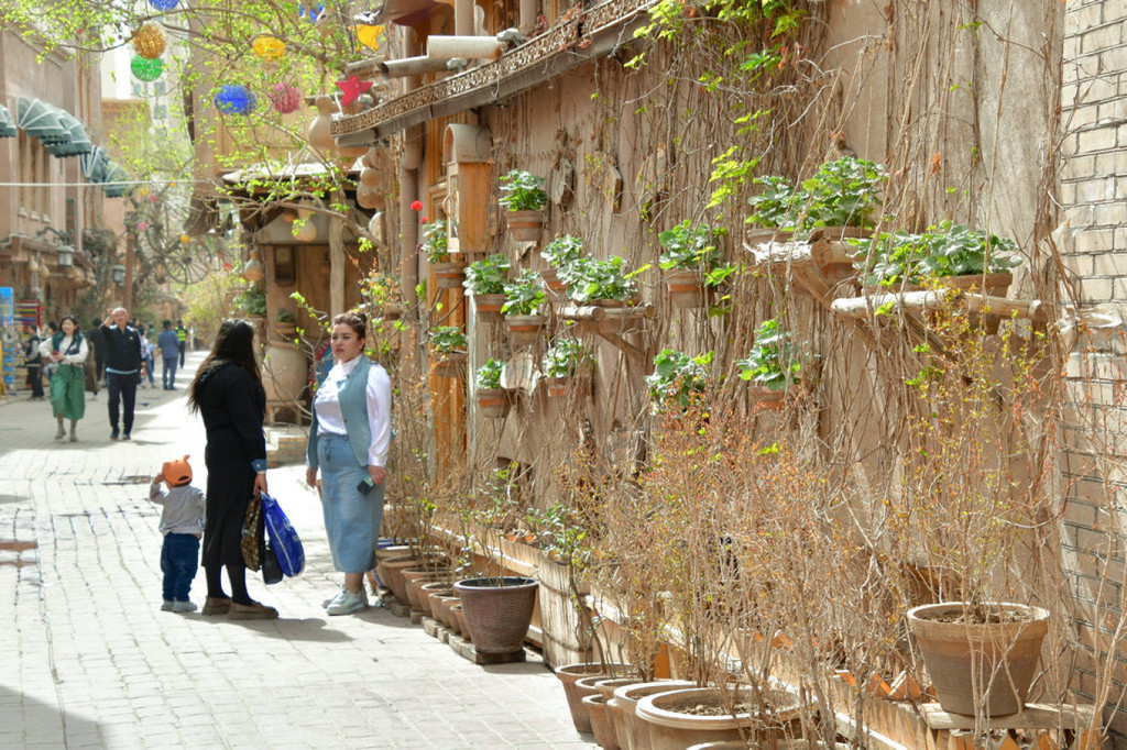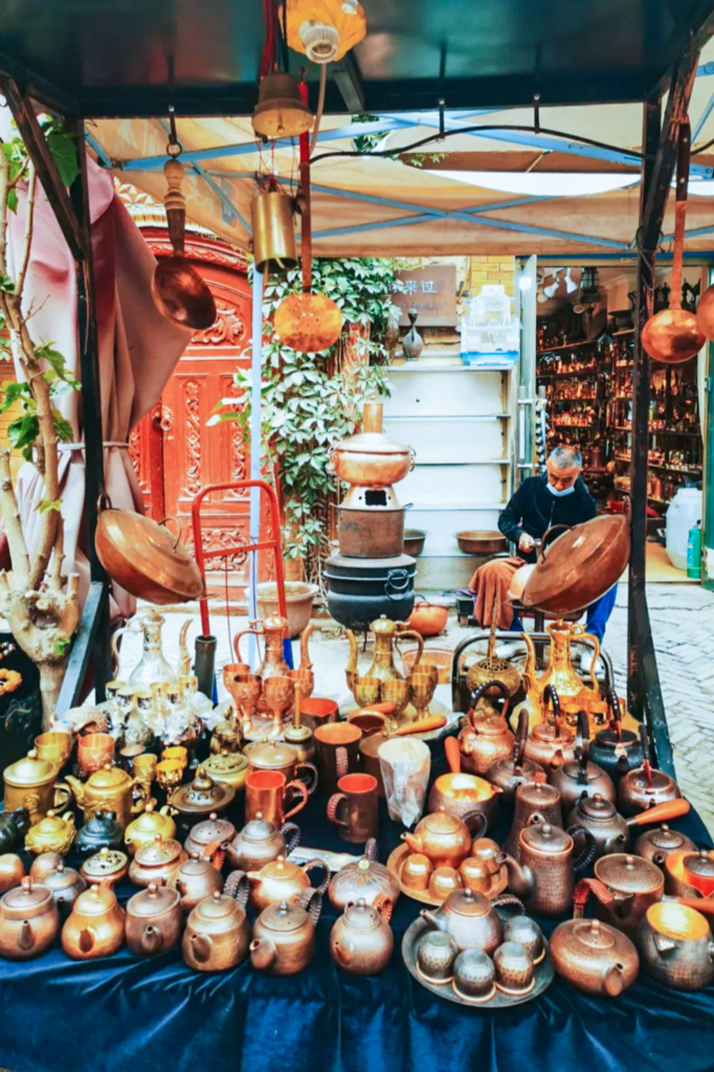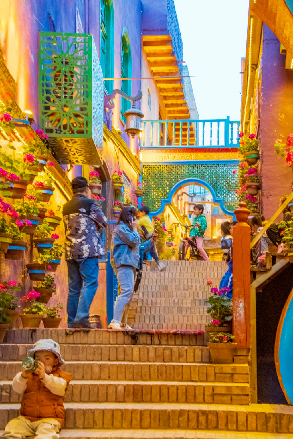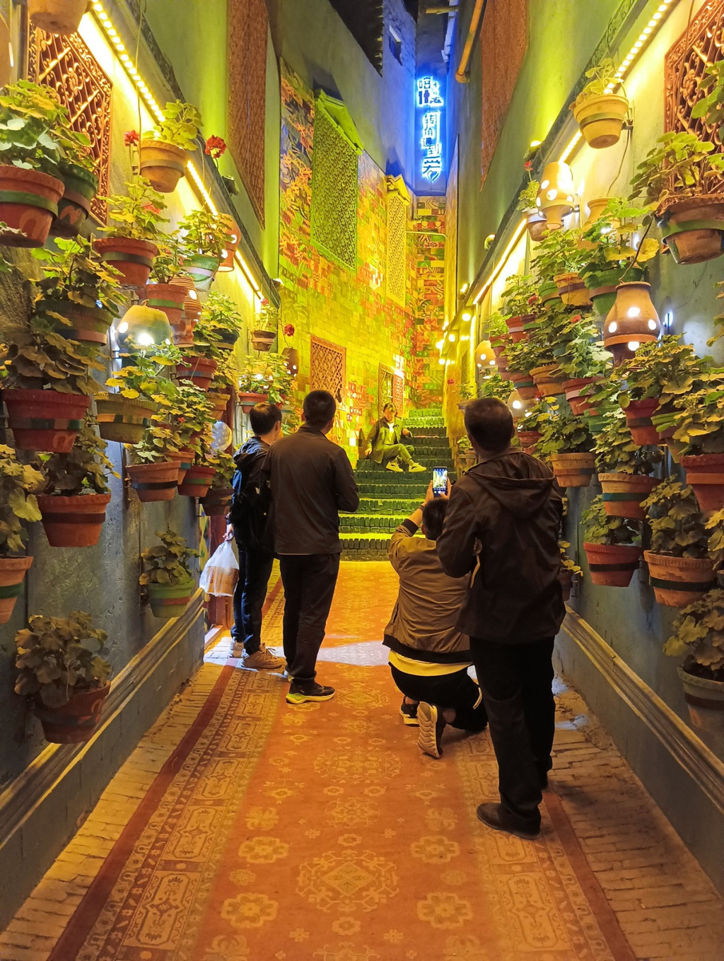 在古城城门出口,有一个迷人的“花盆巴扎”。巴扎是老城的灵魂,几乎每一条街道都有自己的巴扎主题。