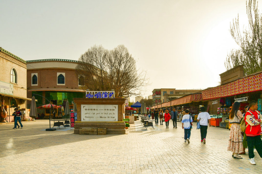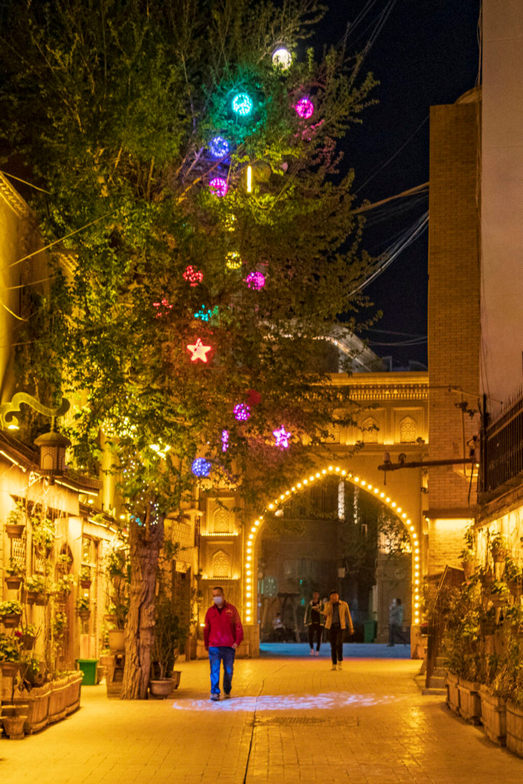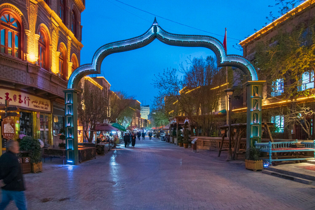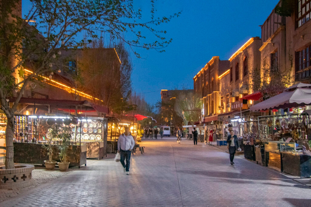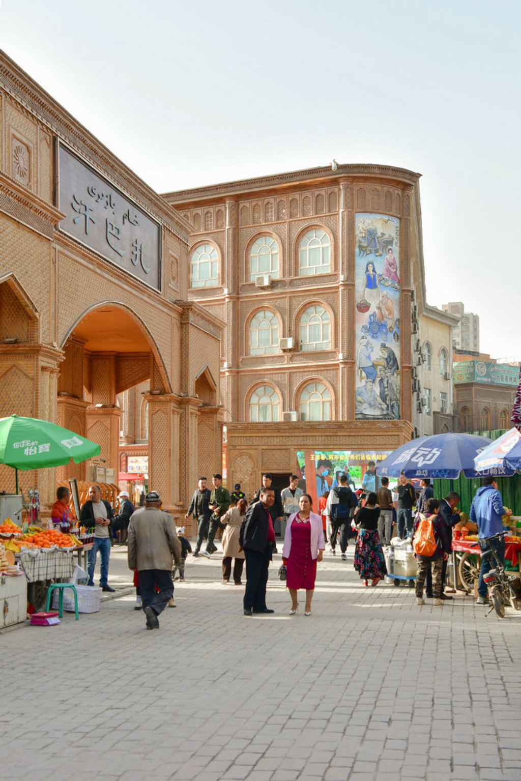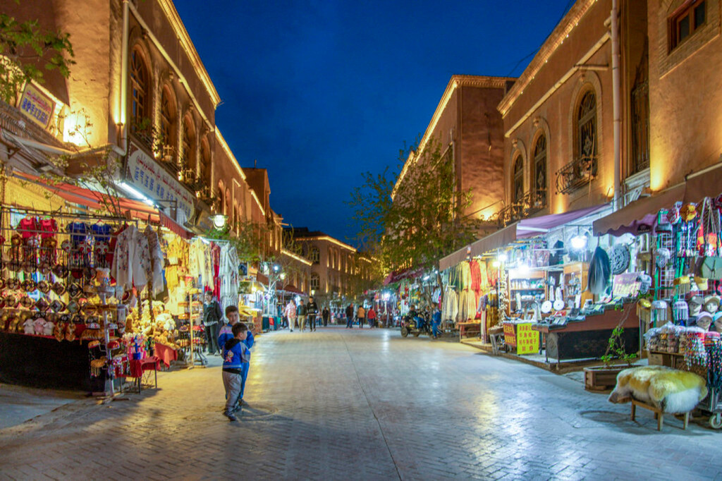 另一头则通向老城的外缘。吾斯塘博依在维吾尔语中原意为“河岸”,如今人们已经在老城区里找不到河流,但这个古老的名字不仅保留了下来,成为老城里商业最繁盛的一条街道。