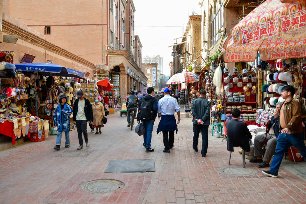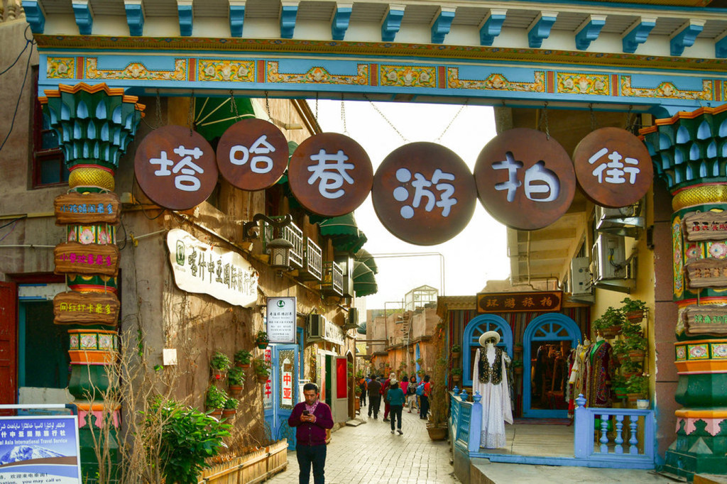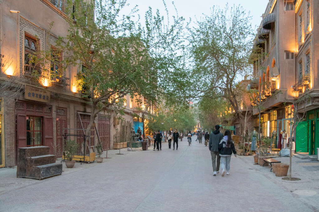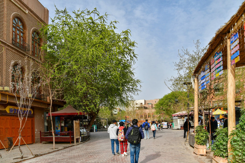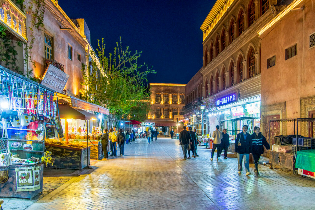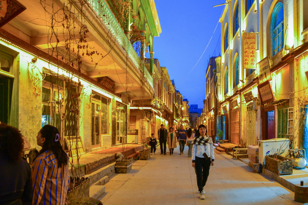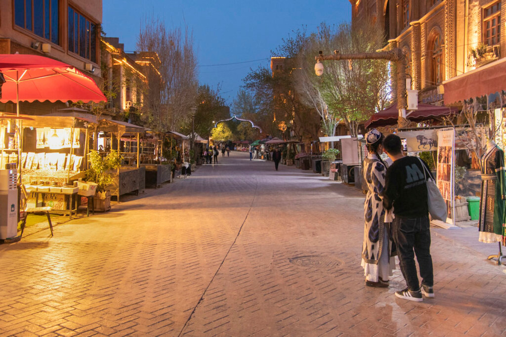 另一头则通向老城的外缘。吾斯塘博依在维吾尔语中原意为“河岸”,如今人们已经在老城区里找不到河流,但这个古老的名字不仅保留了下来,成为老城里商业最繁盛的一条街道。