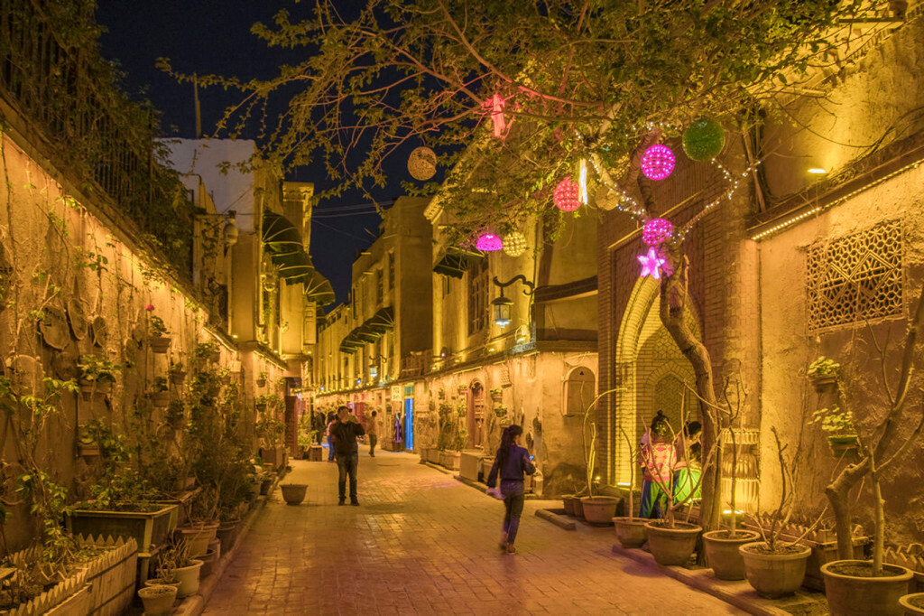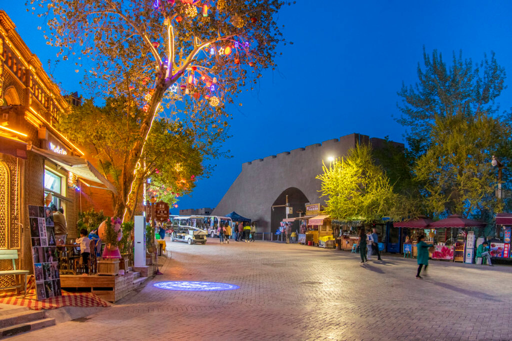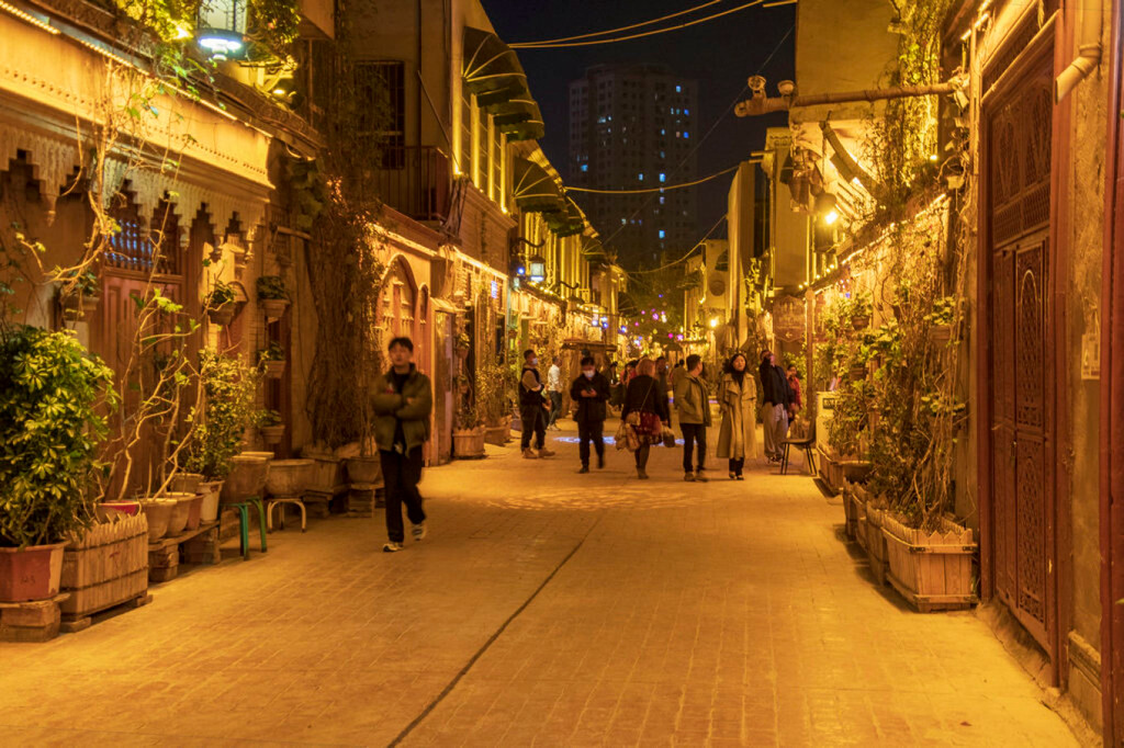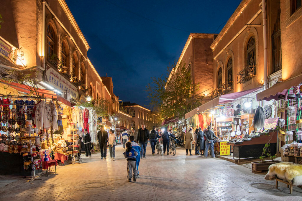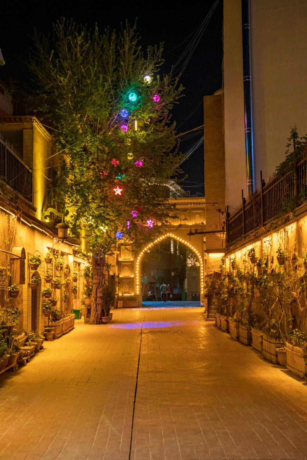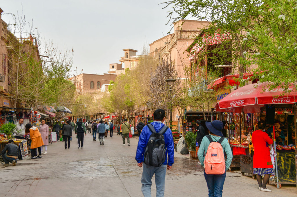 另一头则通向老城的外缘。吾斯塘博依在维吾尔语中原意为“河岸”,如今人们已经在老城区里找不到河流,但这个古老的名字不仅保留了下来,成为老城里商业最繁盛的一条街道。