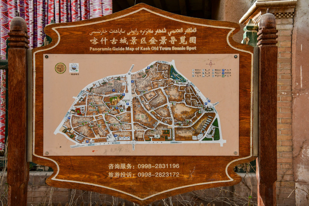 喀什噶尔古城内设有不少指路牌和地图。我们不熟悉路,按照地图和路牌的指引就不会迷路。