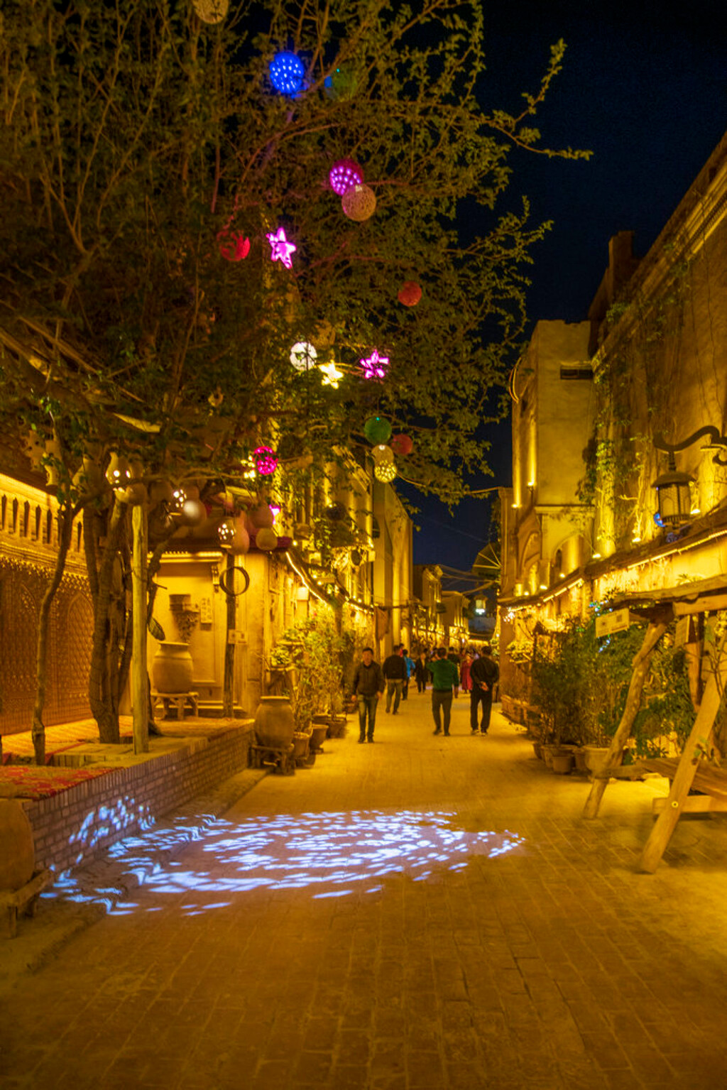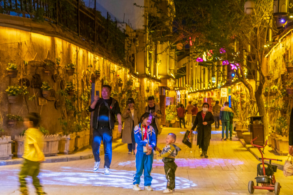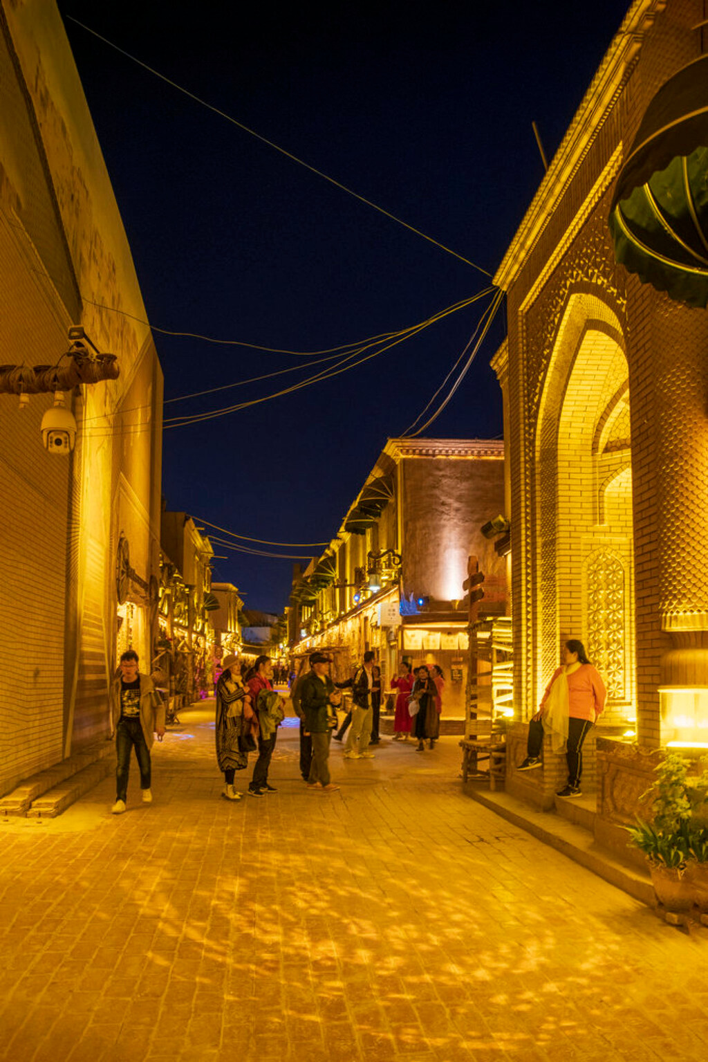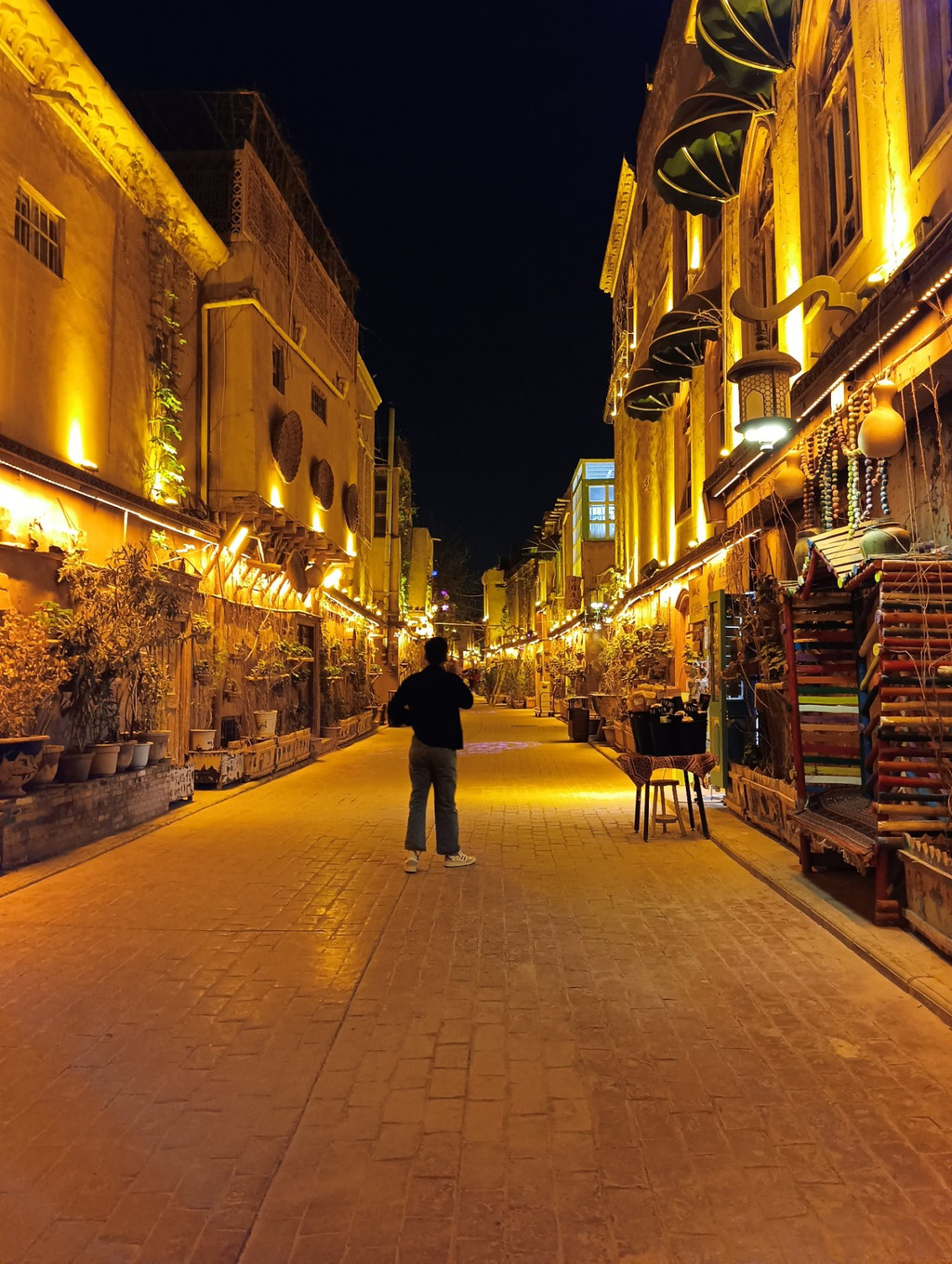 晚上的景比白天还漂亮,黄色的街灯充满浪漫温情,迷失在在神秘的喀什古城。一座城市的浪漫,往往绽放在月夜之时,暮霭四合,华灯初上,尤其是到了春天,整个喀什像是换了装,每一帧都是一张璀璨绚烂的名片”随着夜幕降临,喀什古城处处被灯火阑珊的氛围感和独特的烟火气笼罩,各地游客漫步其间,用心感受古城夜晚的魅力与风采。行走在喀什古城的街头,有一种五光十色的迷幻~古城都被光影点亮,繁华又低调,这才是喀什古城的夜……