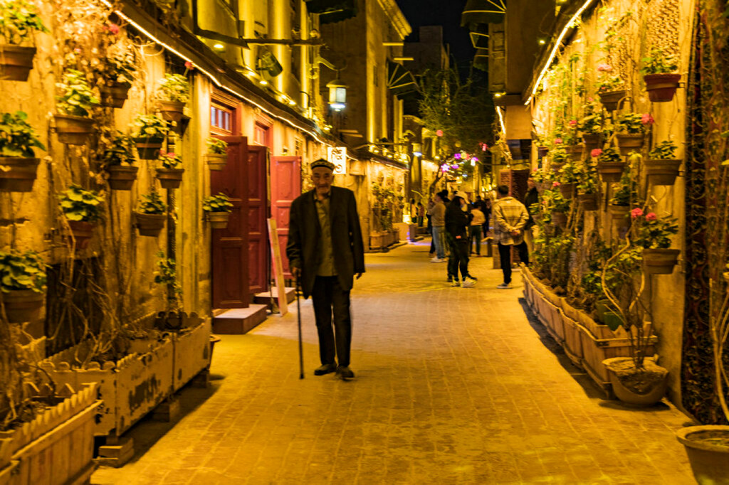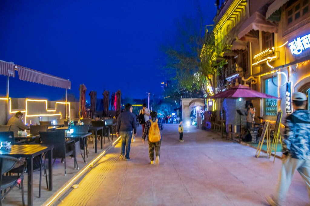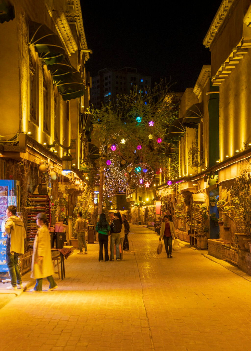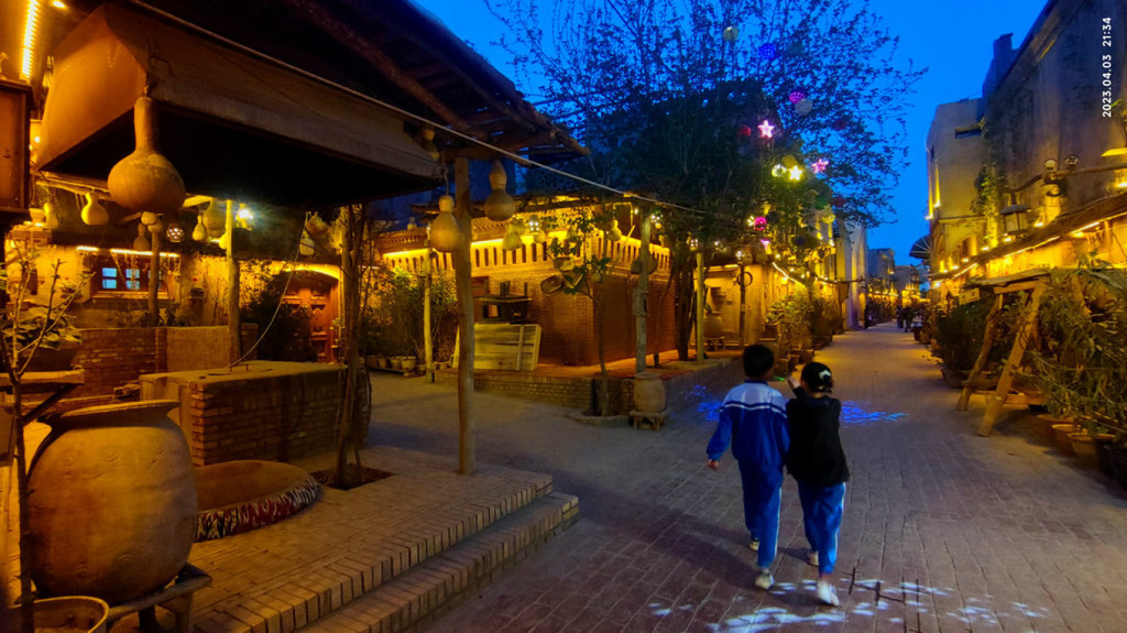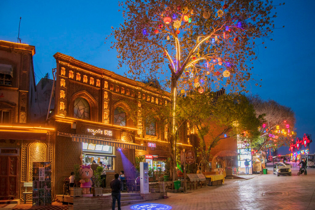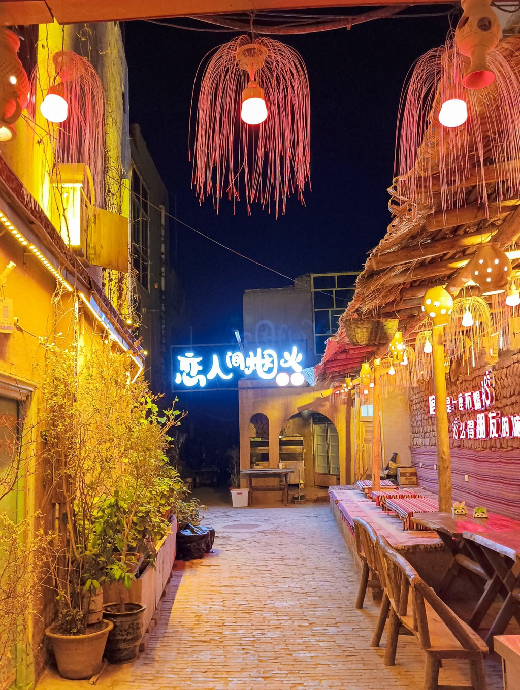 晚上的景比白天还漂亮,黄色的街灯充满浪漫温情,迷失在在神秘的喀什古城。一座城市的浪漫,往往绽放在月夜之时,暮霭四合,华灯初上,尤其是到了春天,整个喀什像是换了装,每一帧都是一张璀璨绚烂的名片”随着夜幕降临,喀什古城处处被灯火阑珊的氛围感和独特的烟火气笼罩,各地游客漫步其间,用心感受古城夜晚的魅力与风采。行走在喀什古城的街头,有一种五光十色的迷幻~古城都被光影点亮,繁华又低调,这才是喀什古城的夜……