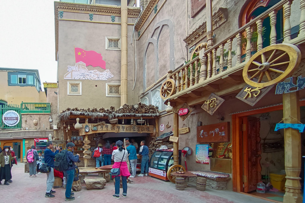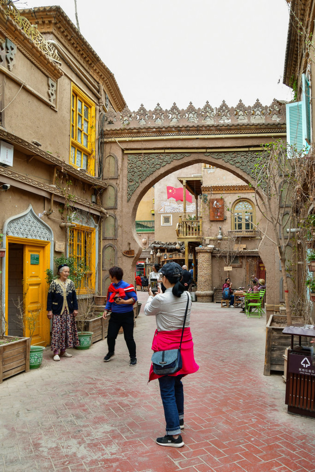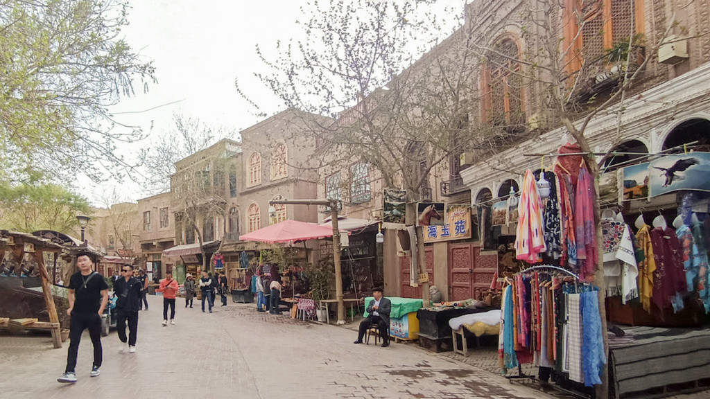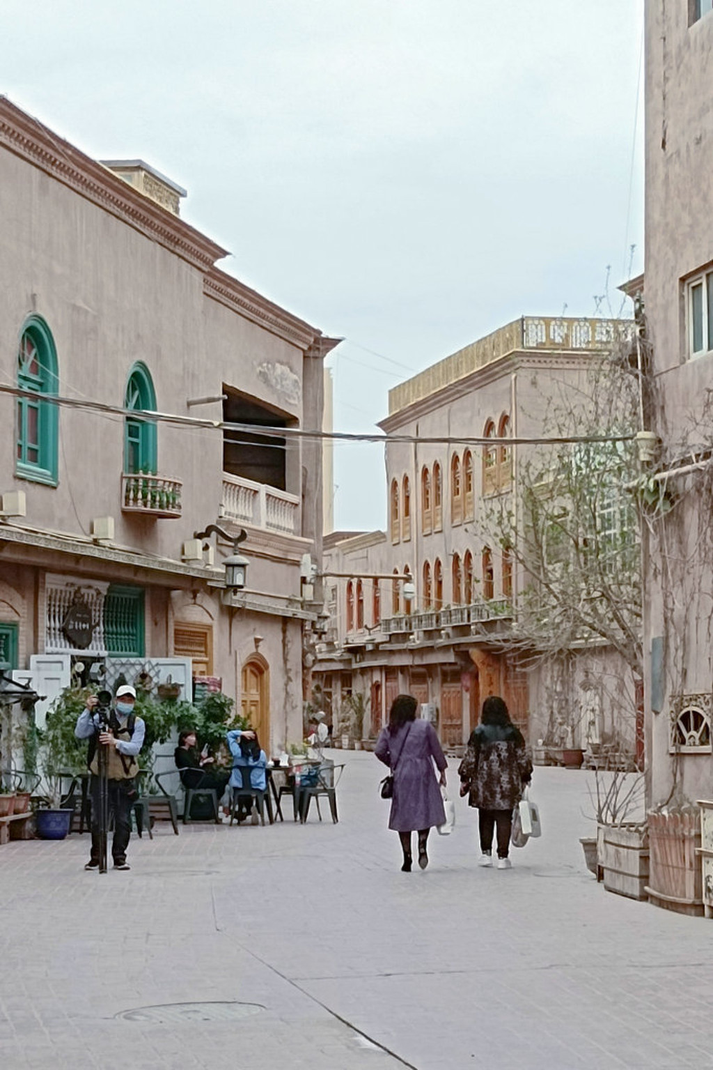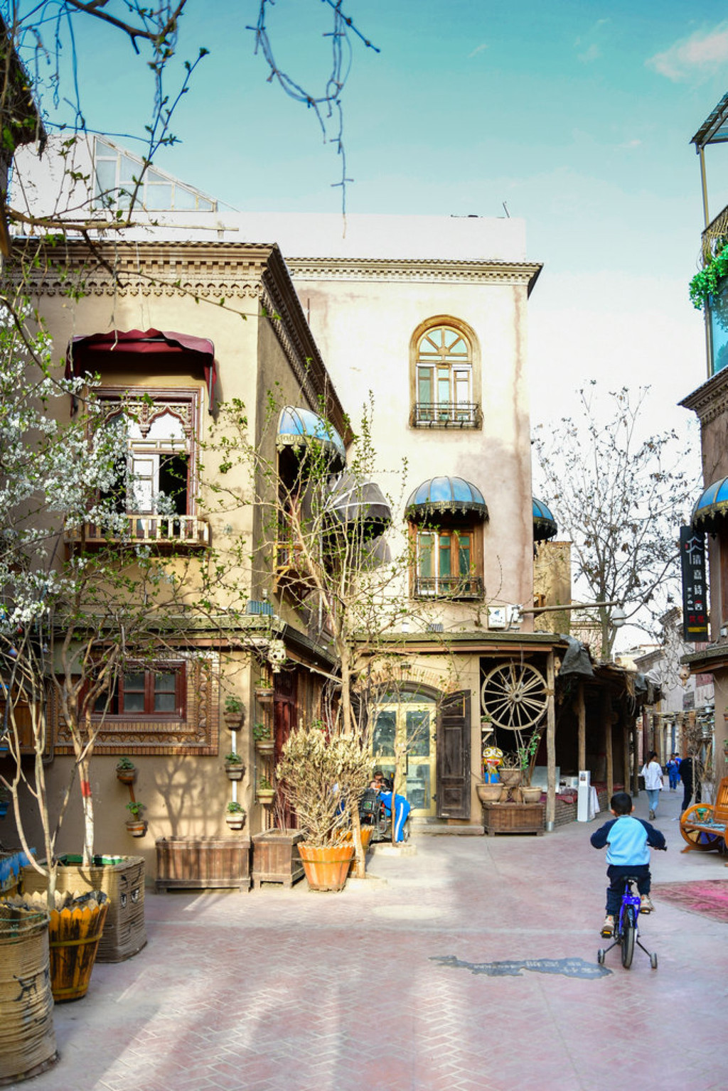 大街上的建筑富有维吾尔族风格,同时也可以看得出不少建筑是进行过仿古包装的“新房子”。