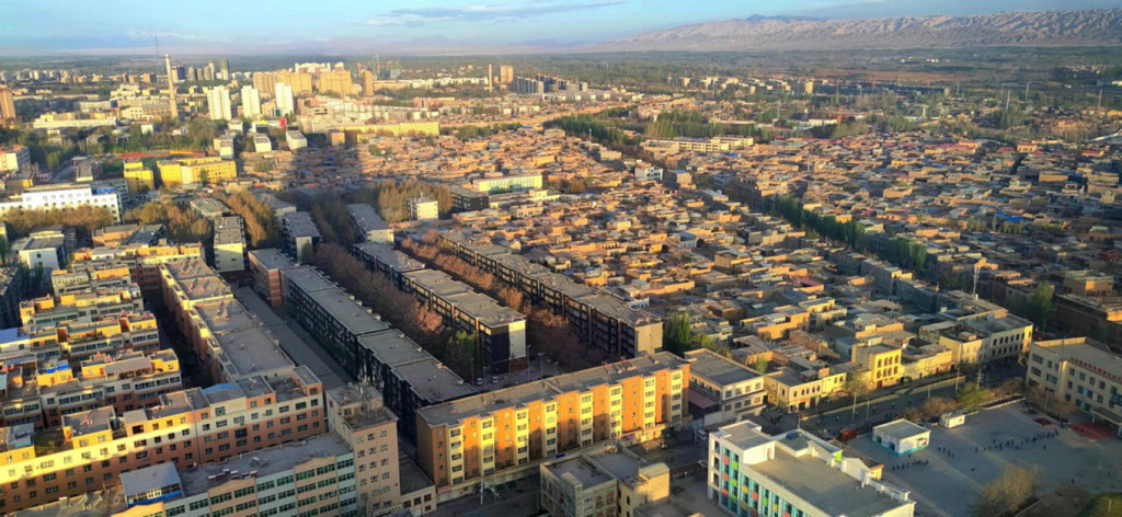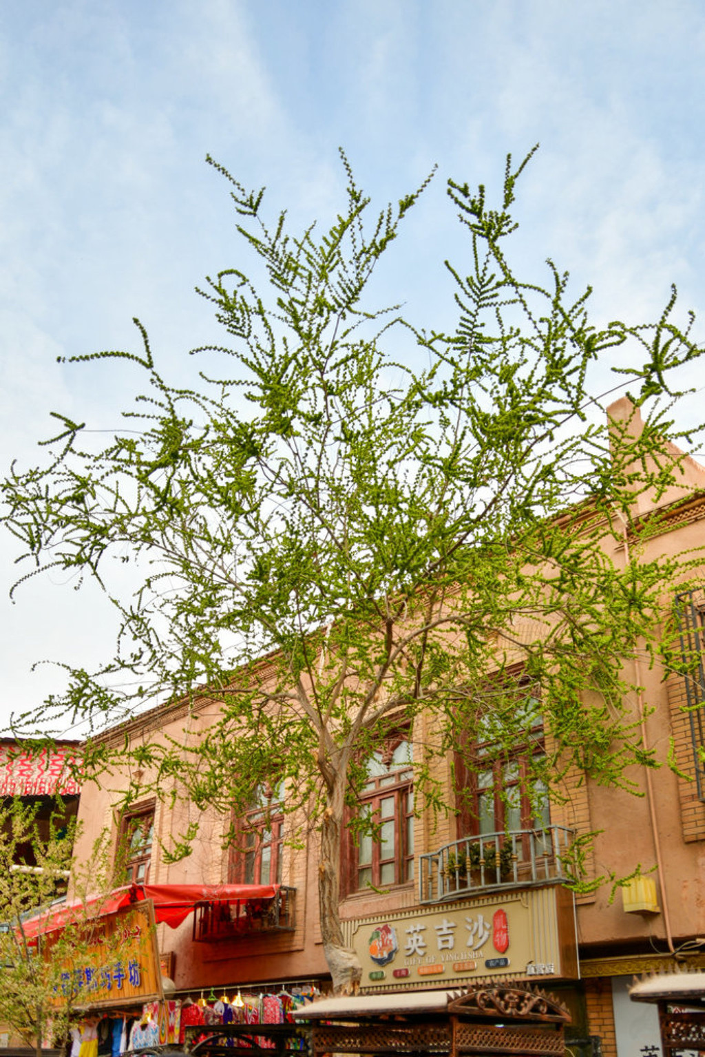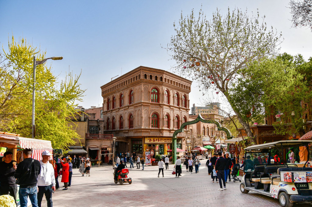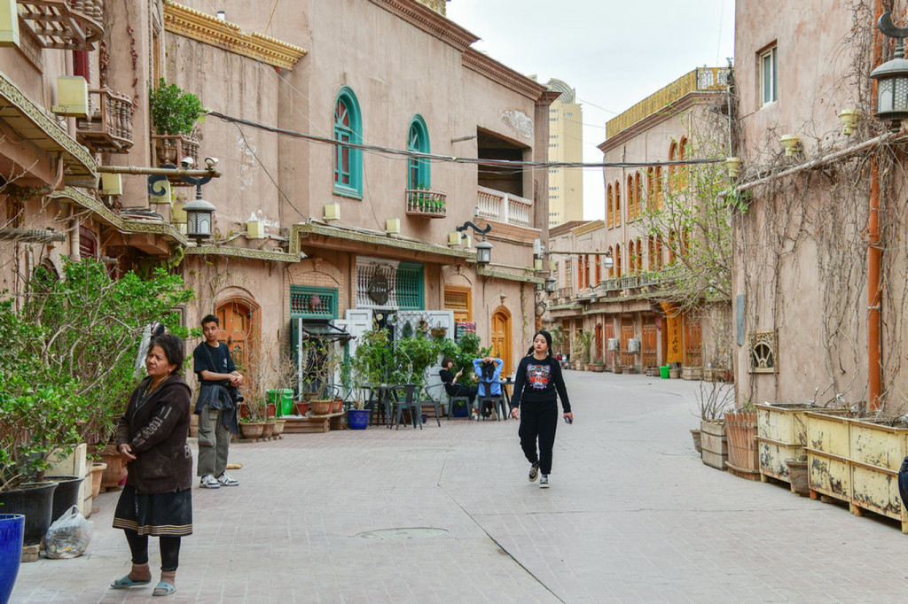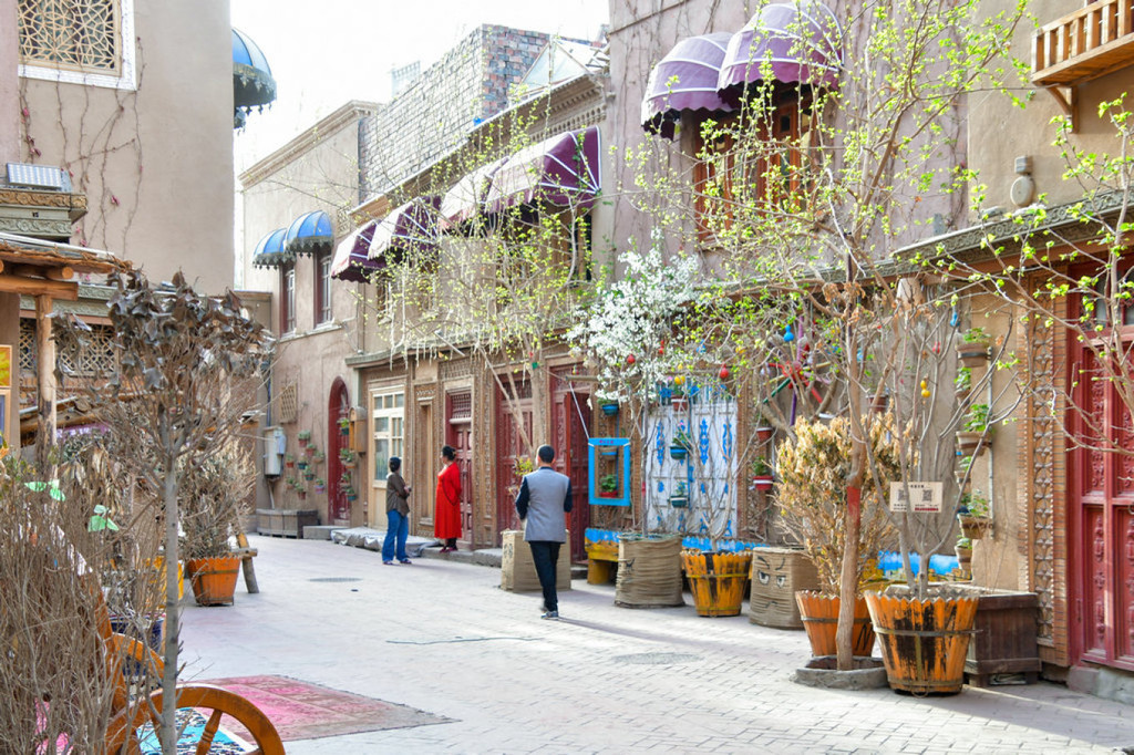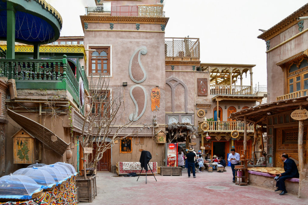 大街上的建筑富有维吾尔族风格,同时也可以看得出不少建筑是进行过仿古包装的“新房子”。