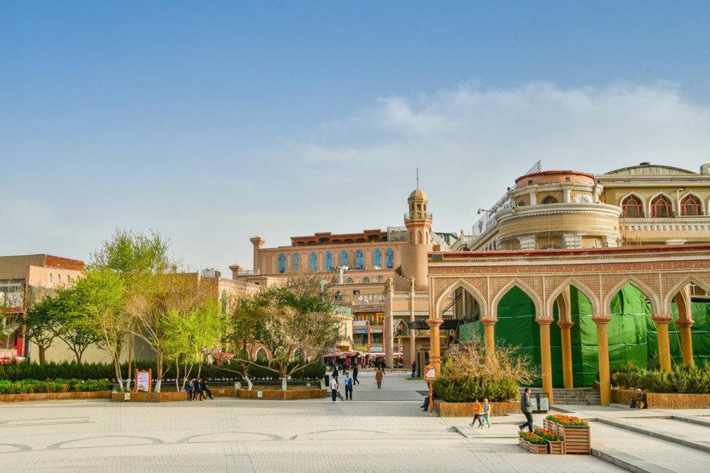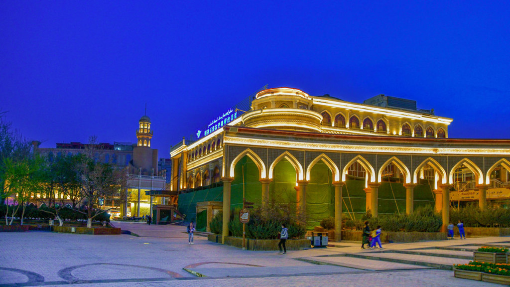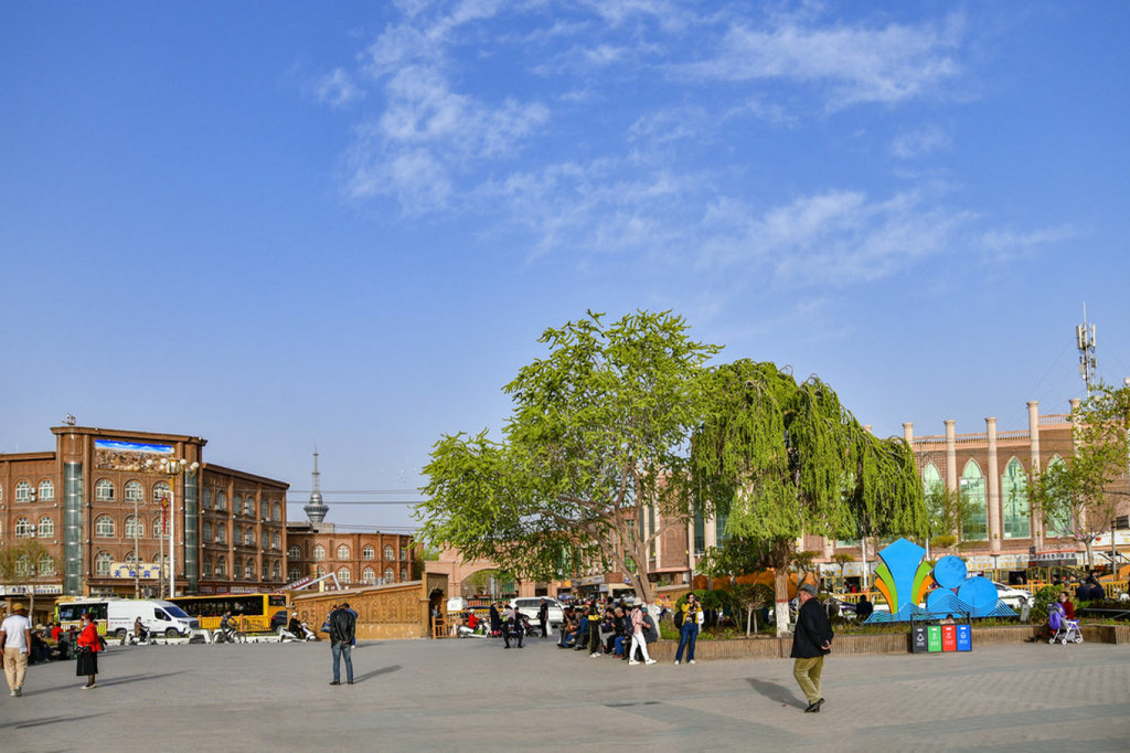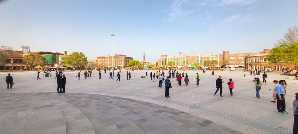 从汗巴扎大门出来,穿过解放北路的地下通道就到了艾提尕尔广场