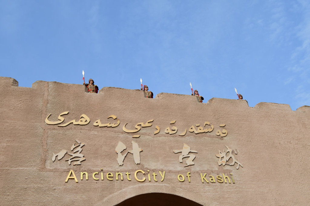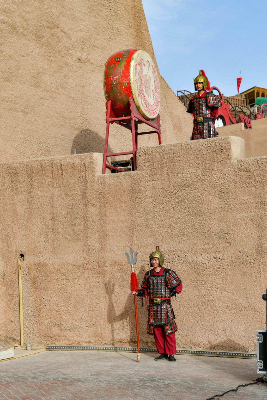 经过历史的沧桑岁月,其实原先的喀什古城的老城门已经不存,为开发旅游,现在看到的是在老城门处重建了一座仿古城门,古城开城仪式结束之后,观看的游客慢慢散去,我们围着“古城城门”转了一圈,看着很有古城的风韵吧