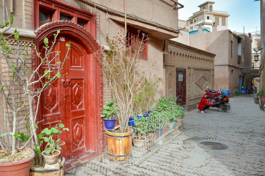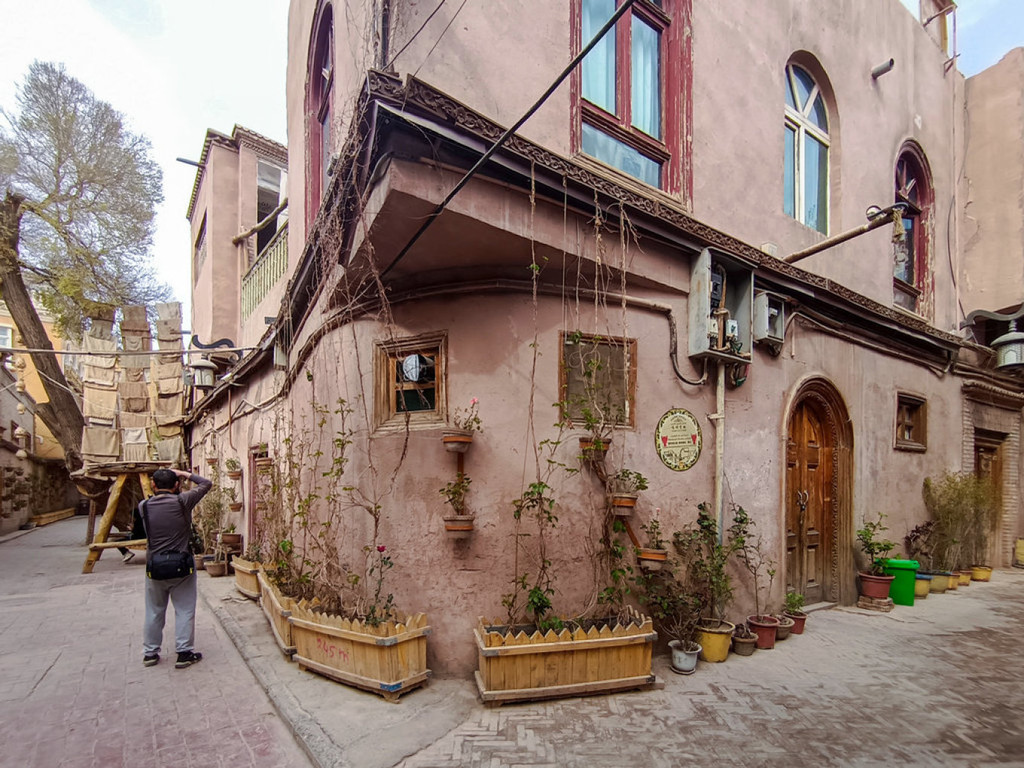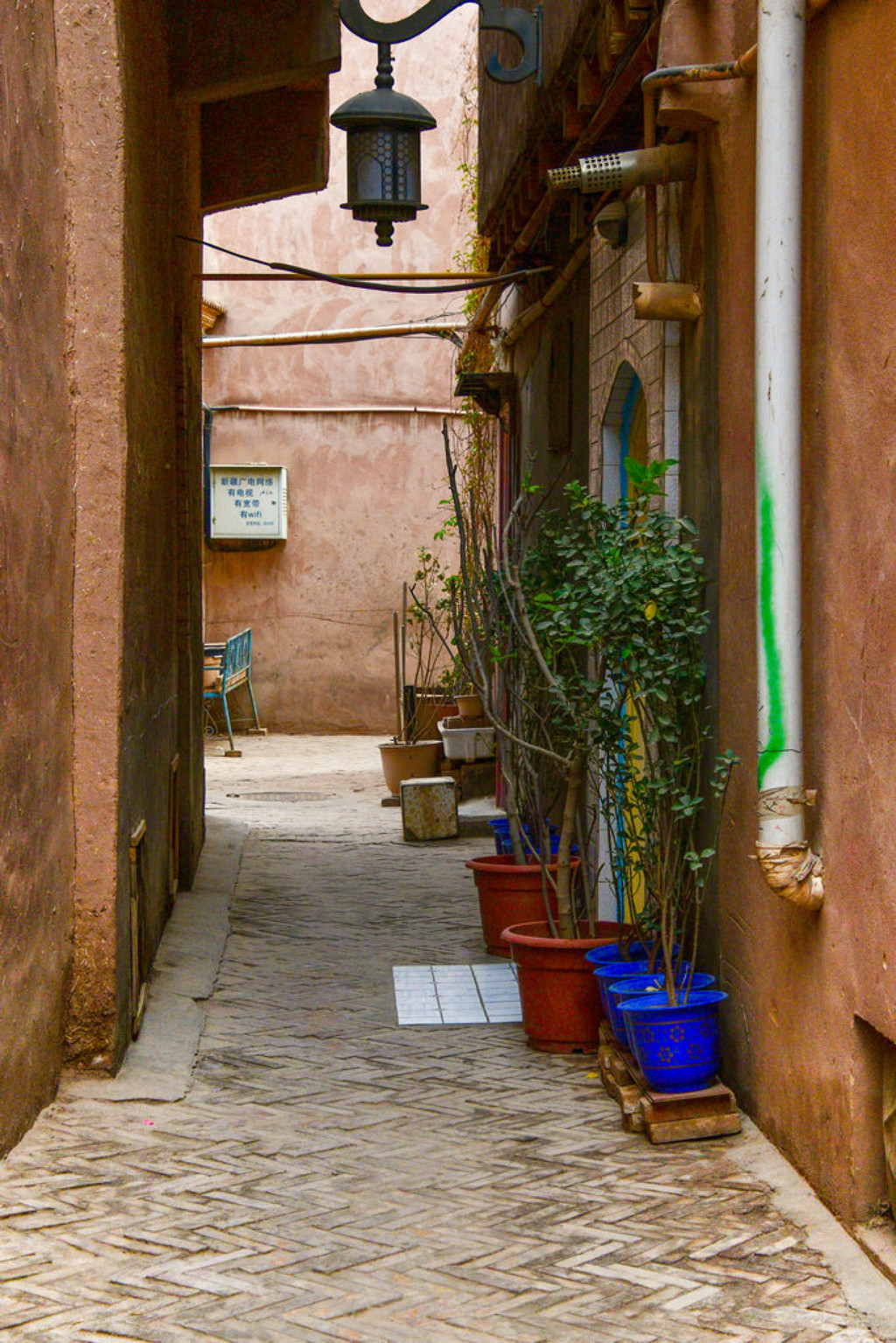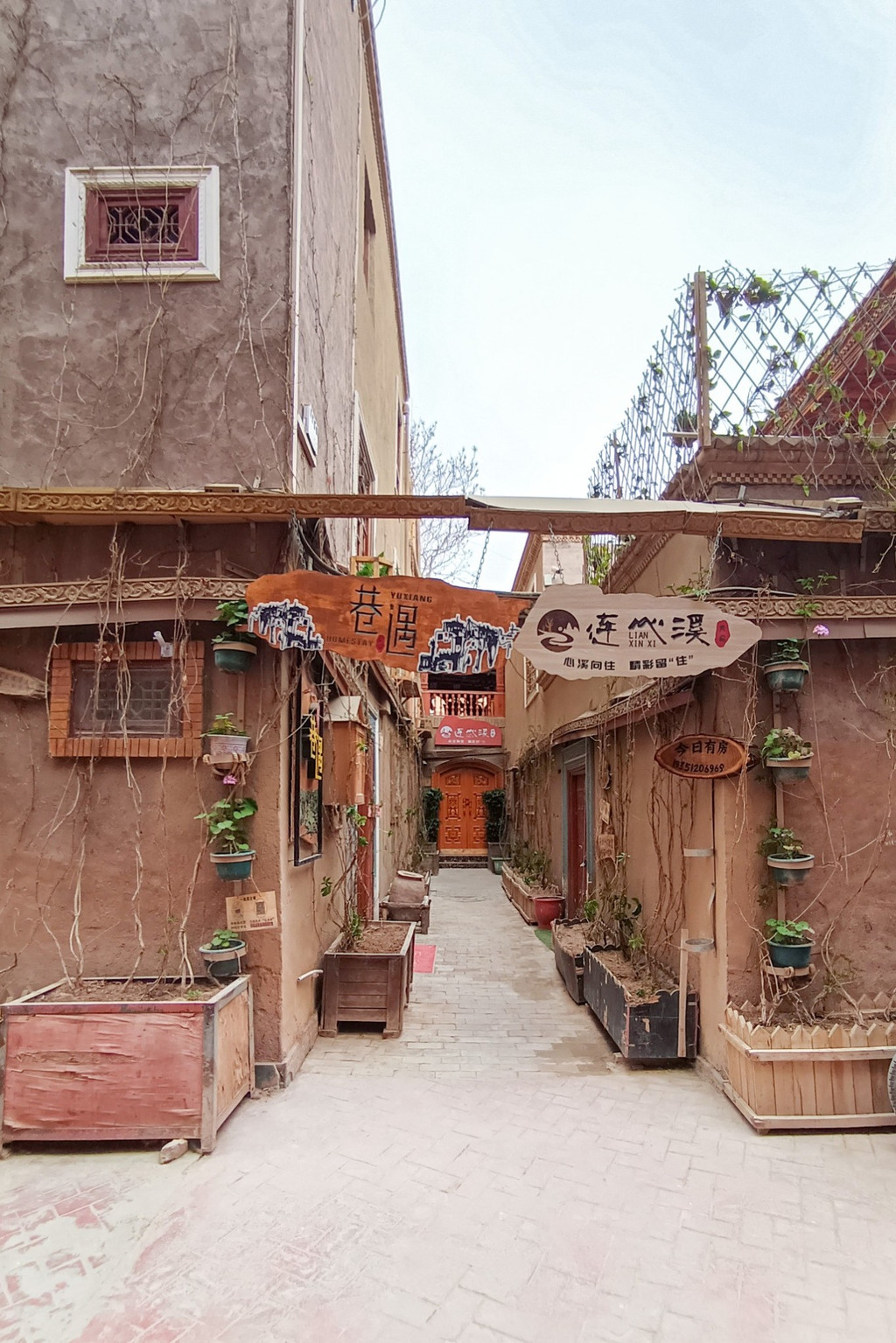 巴格其巷走进去就是民宿街,这里有很多民宿,可以在房顶上欣赏喀什古城的全貌。