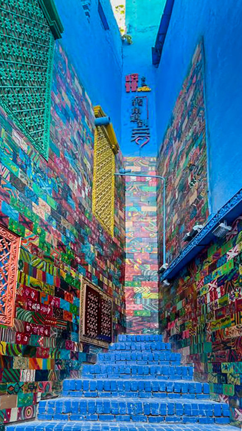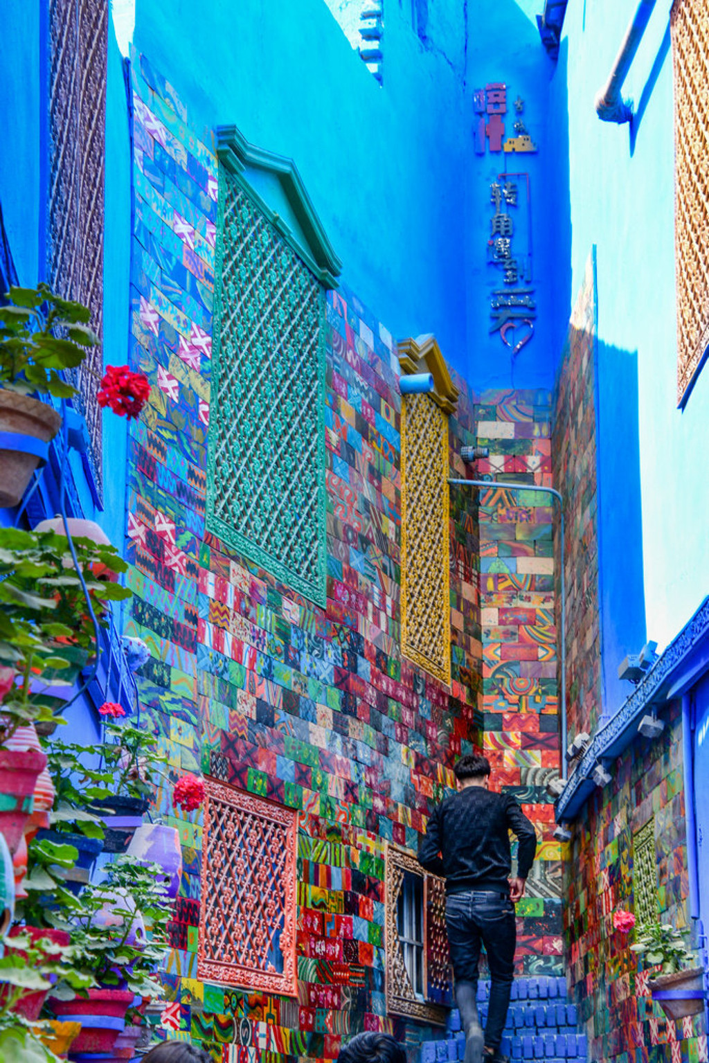 彩虹巷是以蓝色为主题的为背景,充满现代气息的古城人文风貌