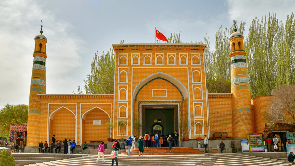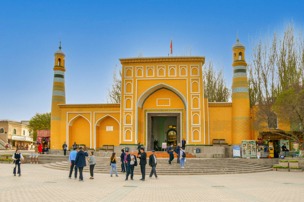 艾提尔清真寺位于中国新疆喀什,是新疆最大的清真寺,也是中亚最有影响力的三大清真寺之一。该寺始建于1442年,是全疆乃至全国最大的一座伊斯兰教礼拜寺,在国内外宗教界均具有一定影响,为自治区重点文物保护单位;占地25.22亩,坐落在喀什市中心艾提杂广场西侧。这是一个有着浓郁民族风格和宗教色彩的伊斯兰教古建筑群,坐西朝东,由寺门塔楼、庭园、经堂和礼拜殿四大部分组成。