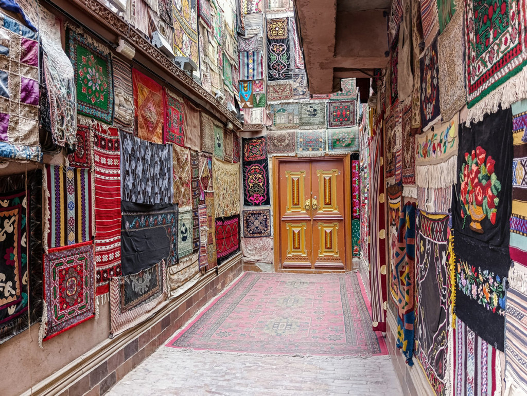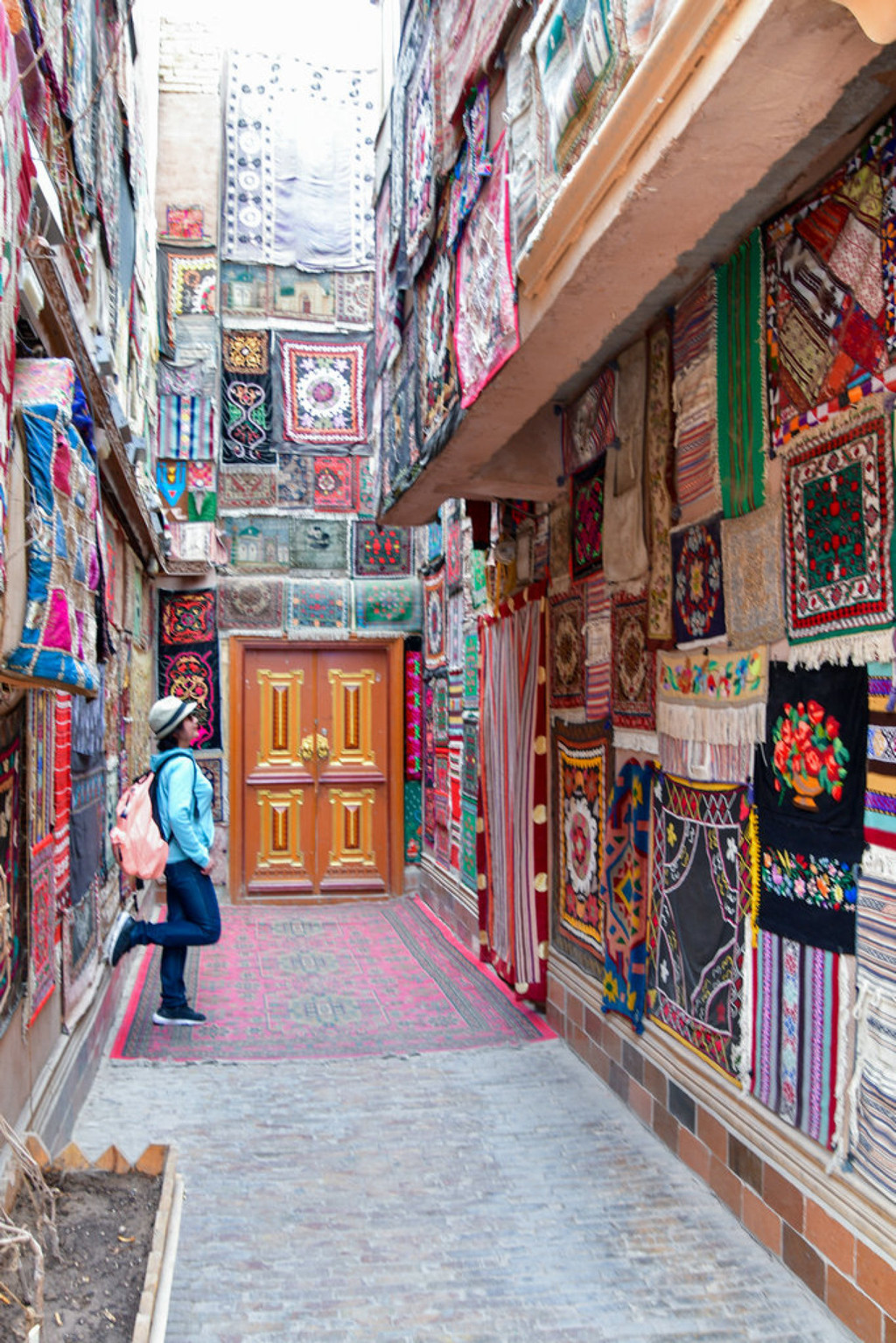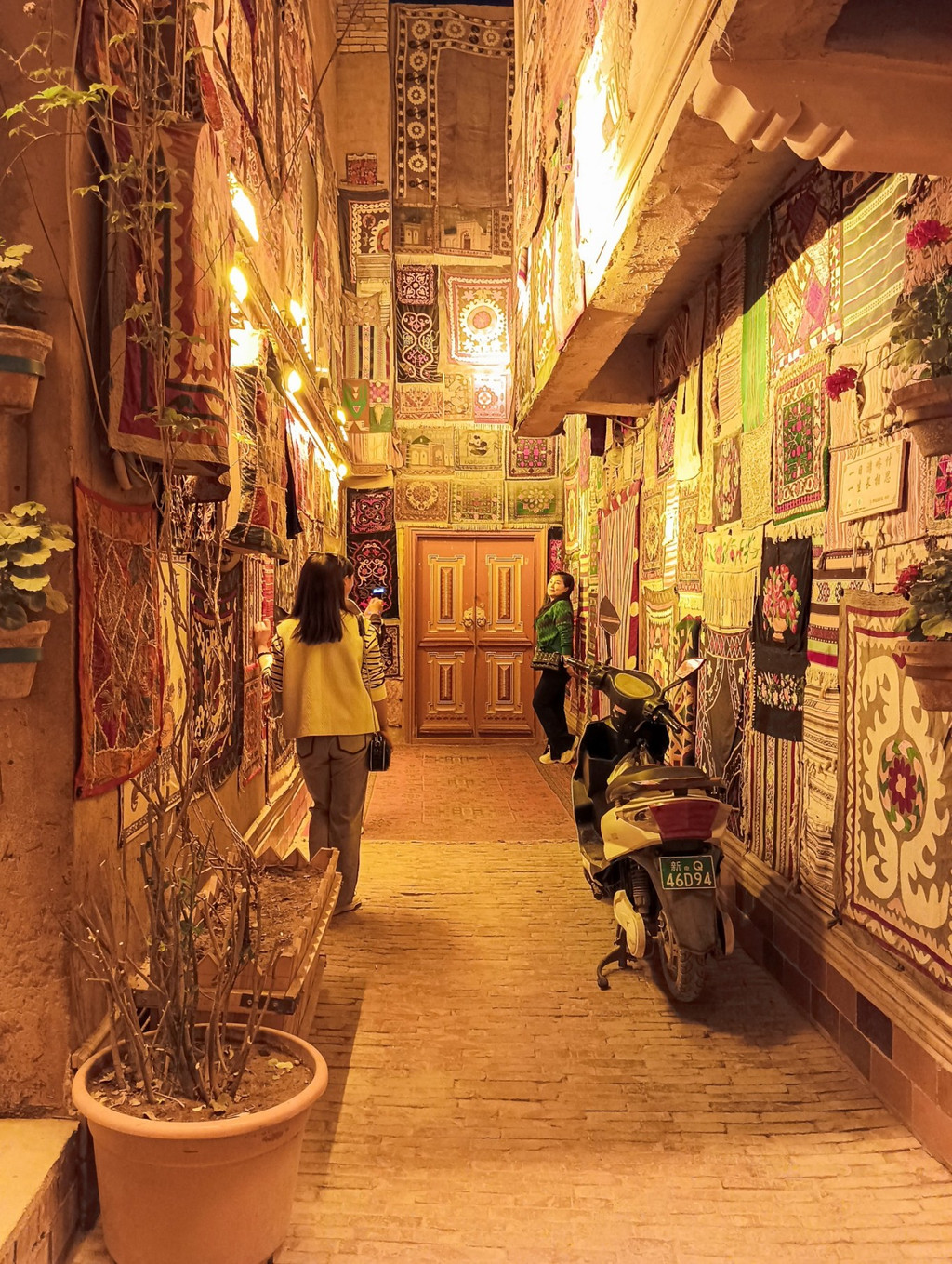 各式各样的地毯挂满了巷子,为何不叫地毯巷?有一种说法,认为四周都是块状拼接的地毯,人走在巷子里,仿佛置身一个巨大布袋之中。