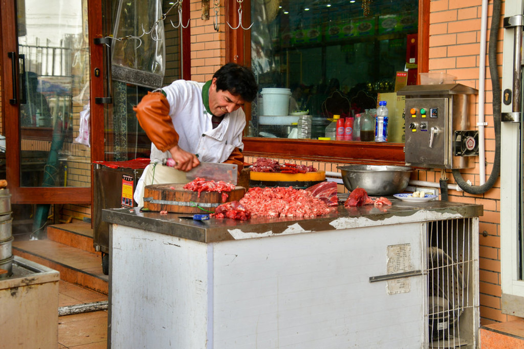 缸子肉,是新鲜羊肉用搪瓷杯小火慢炖熬制而成,羊肉汤散发出来的香气令路人垂涎欲滴。