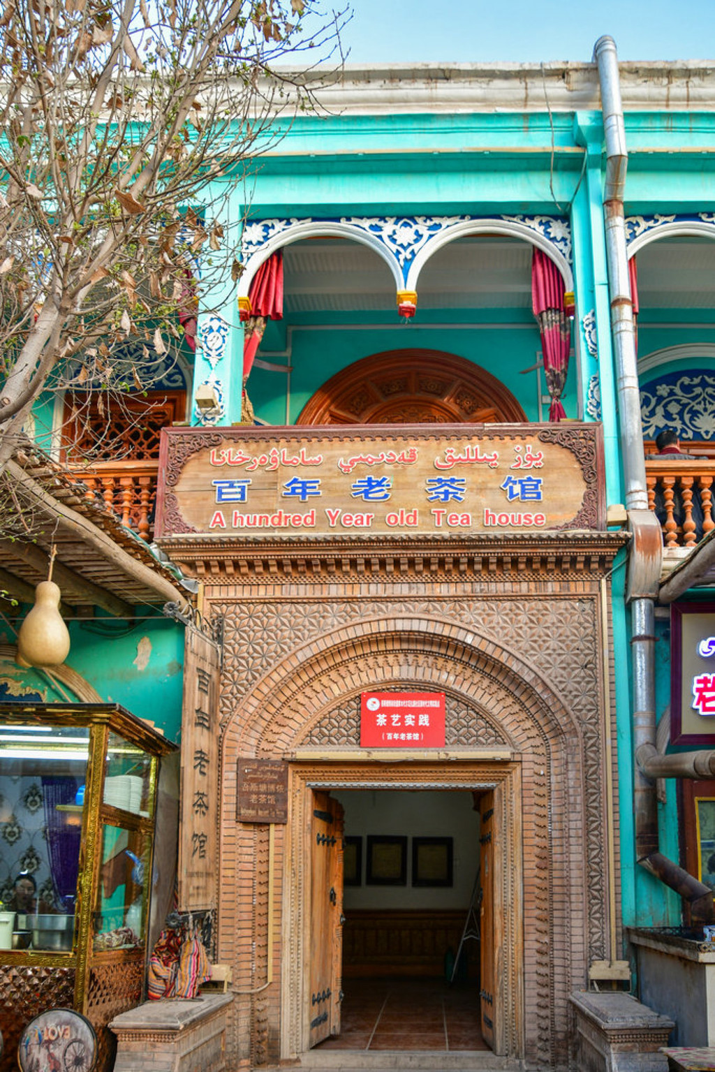 这幢具有典型维吾尔族风情的两层建筑——百年老茶馆,浓缩了喀什好几代人的美好记忆。这座茶馆备受内地甚至外国游客欢迎。门面还是比较醒目,茶馆是在二楼,很有东欧的风格。