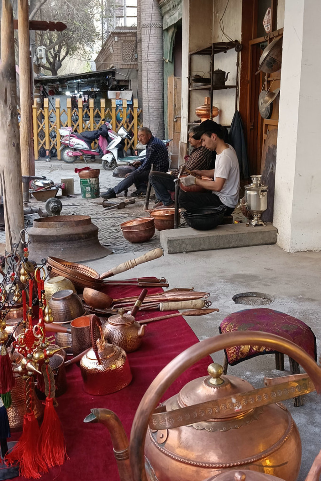 职人街又称手工一条街。因手工艺特色突出,是喀什的标志性街道。这里有手工艺人祖祖辈辈相传的手工作坊,有维吾尔民间乐器世家、喀什最大的铜器世家,以及传统薄木蒸笼生产、木兰旋木、棉絮翻新等作坊,整条街道与巴扎共存,手艺与传承共生!