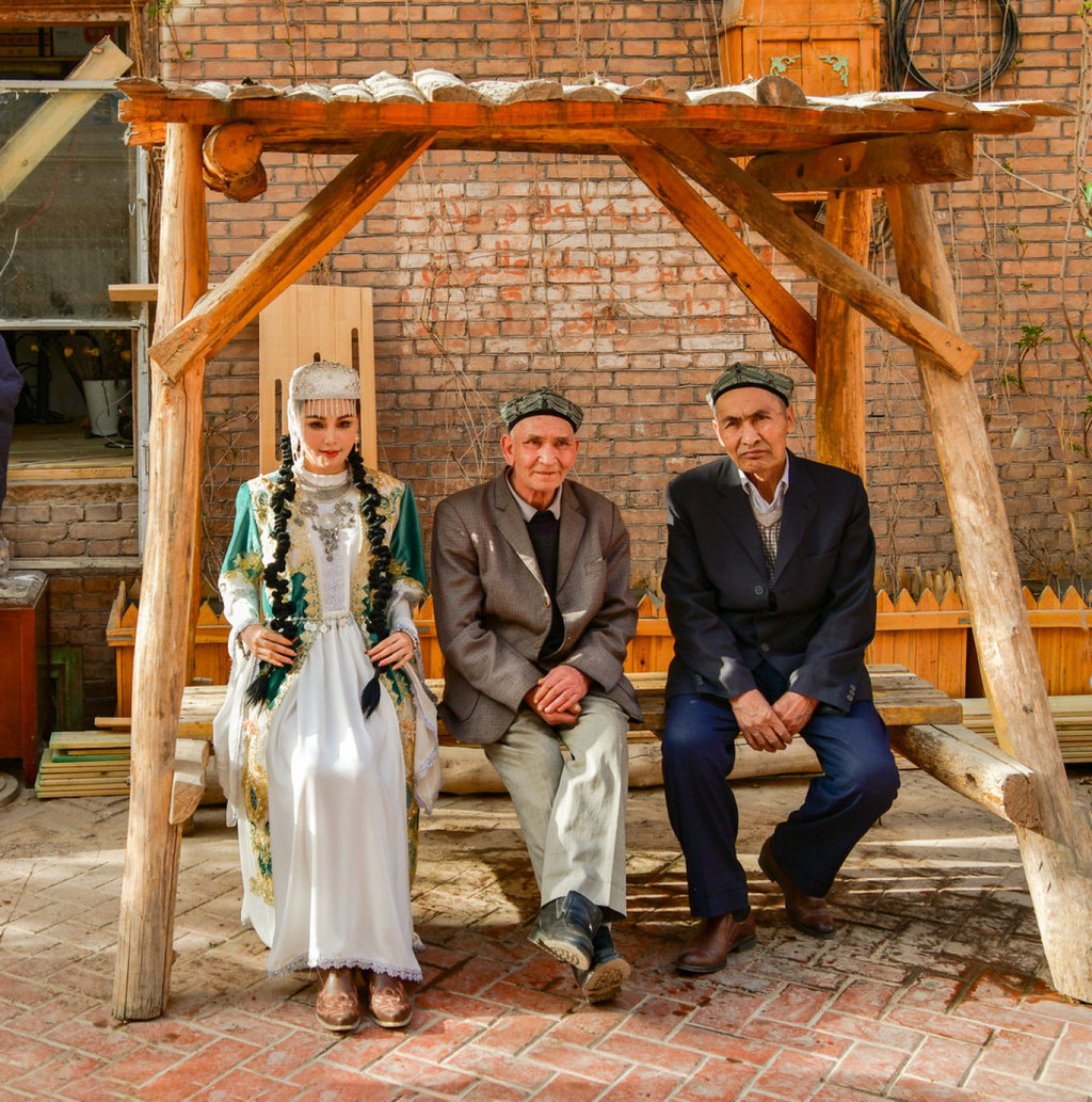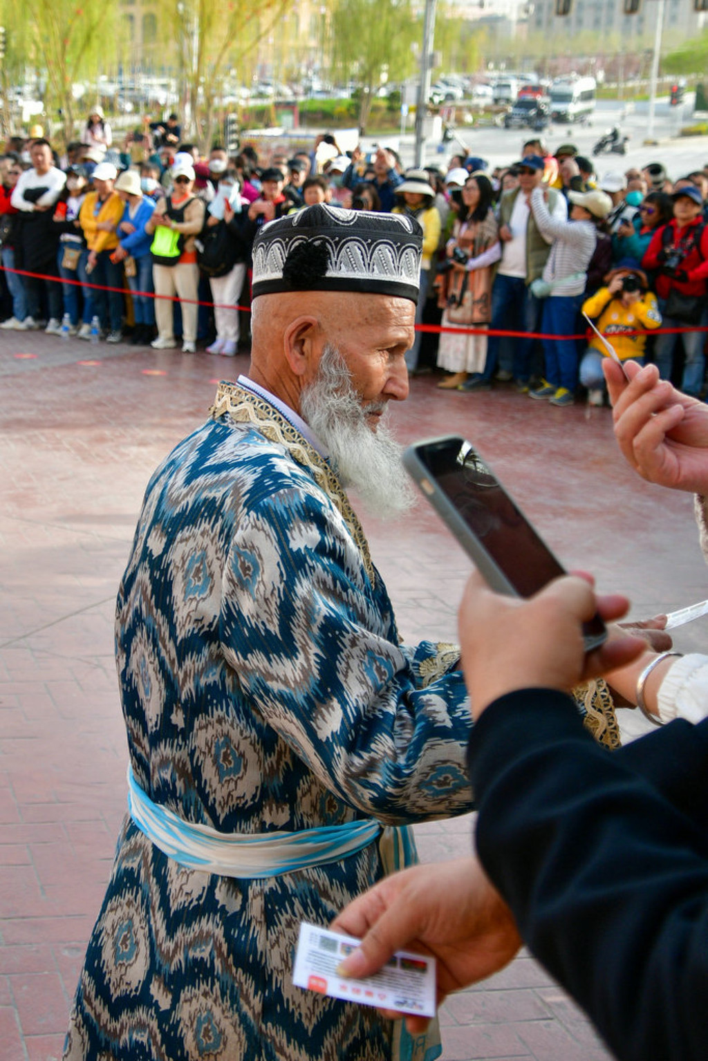喀什古城开城仪式的维吾尔族爷爷魅力四射,众游客大妈争相斗艳
