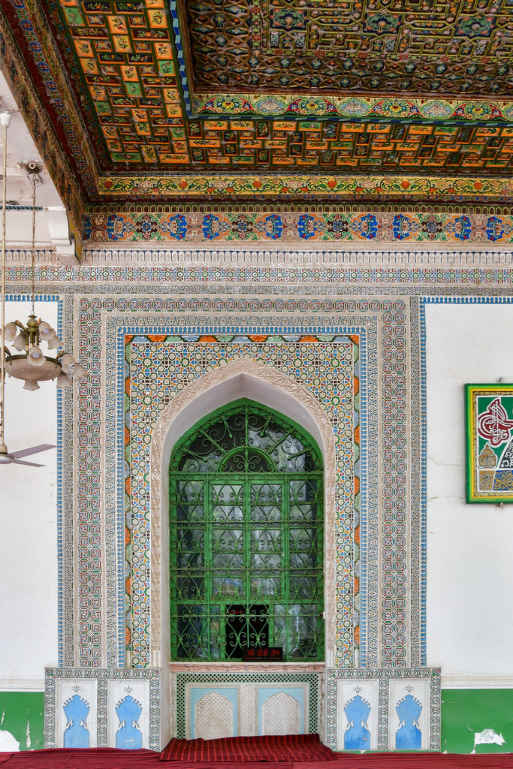 艾提原尔清真寺地位的显要还不在其规模,而是它是全疆穆斯林“聚礼”之地。虔诚的穆斯林信徒一天会做五次礼拜,即晨礼、晌礼、午礼、昏礼、宵礼,每次做十五分钟,周五是一个半小时。乃尔法直本寺 新疆喀什旅游提艾想乃尔注市土协人