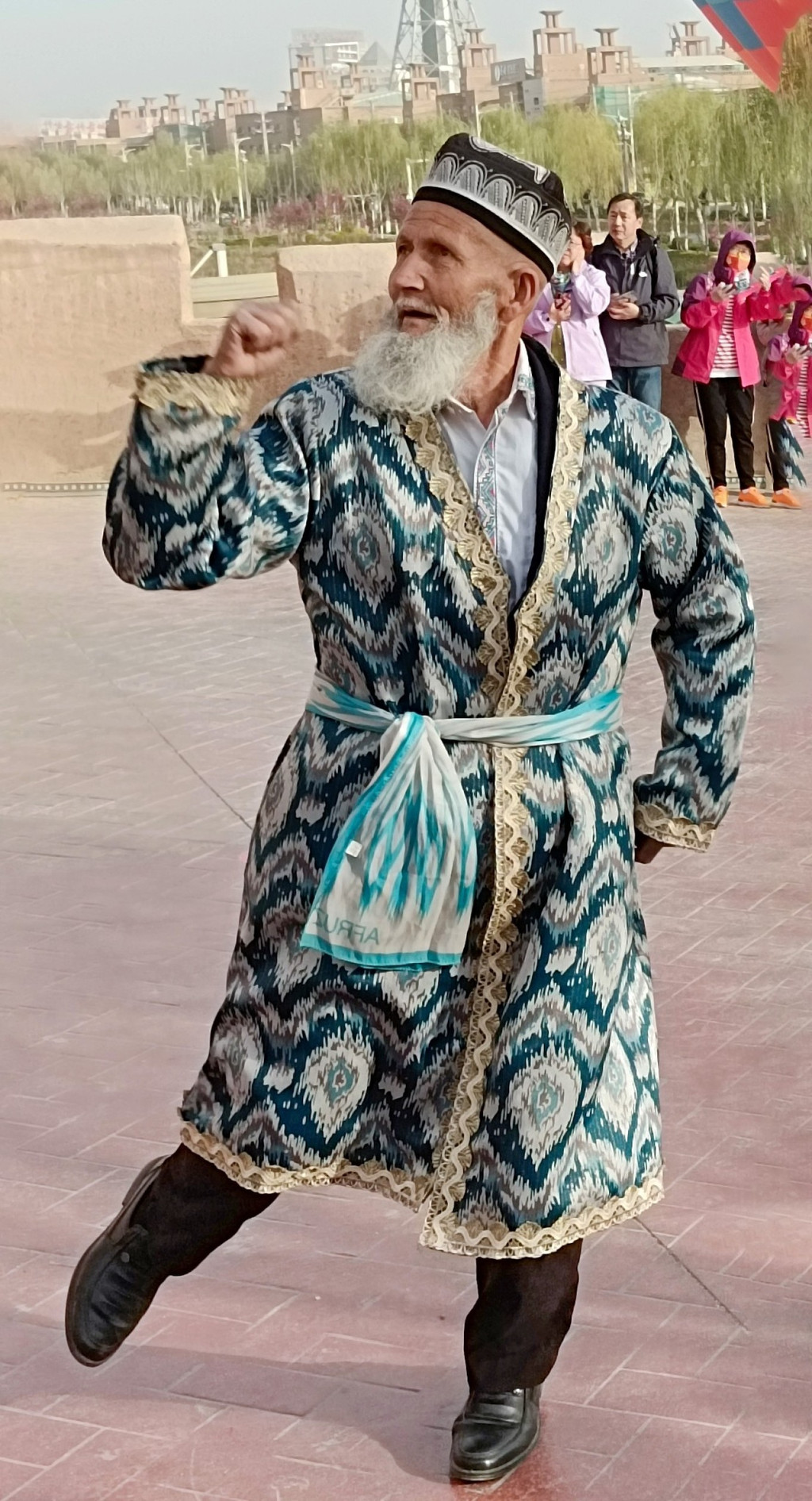 他精神矍铄,舞姿优美,被很多人亲切地称为喀什古城的“网红爷爷”。