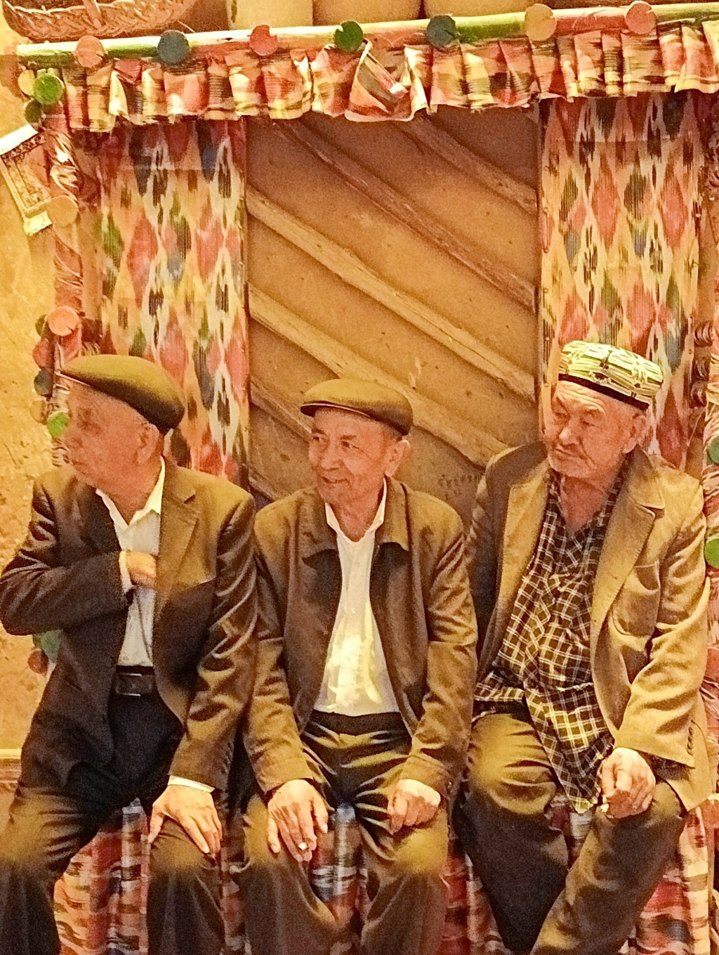 美食街一角,当地的老汉集在一起,喝茶聊天,自娱自乐