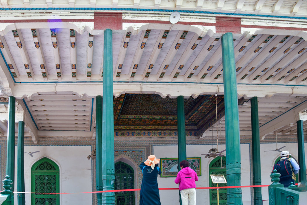 穆斯林进人廊檐必须脱鞋,不分贵贱,依次进人。