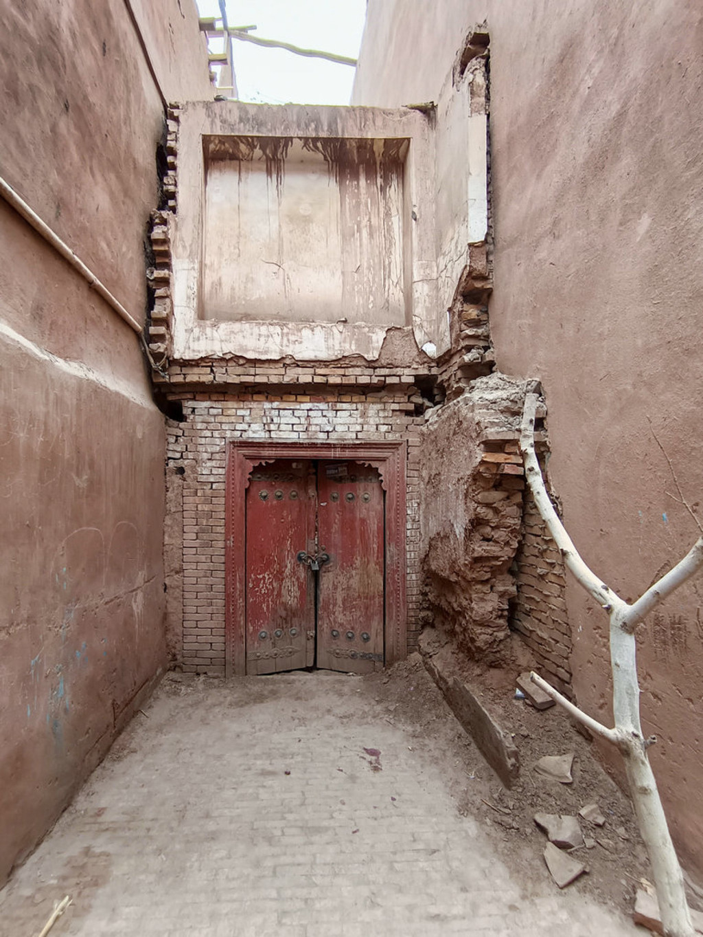 喀什古城老城墙,说是城墙,实际上是一道陡坡,削直衬砌而成。