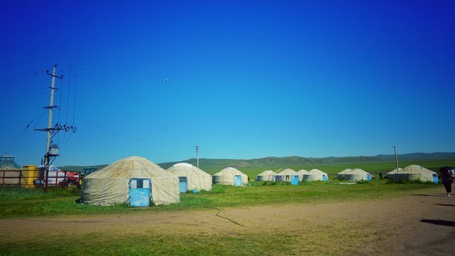 车子慢下来的时候,路过了非常朴素的 蒙古 包群,这些是真正的牧民款 蒙古 包。