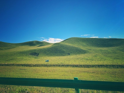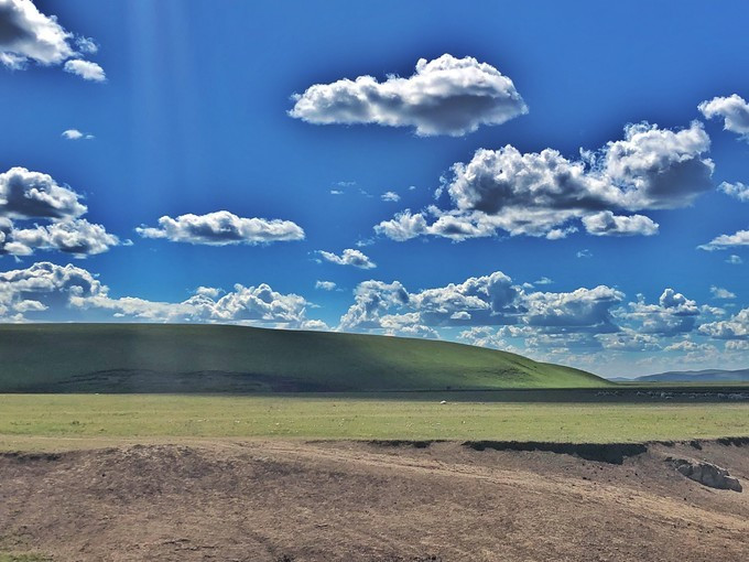 吃完早饭,见了小王。我们就继续坐车往前开。草原山的样子就像是一块巨大的棉布覆盖着什么没有棱角的物体。线条非常柔和,像有暖意的肌肤。